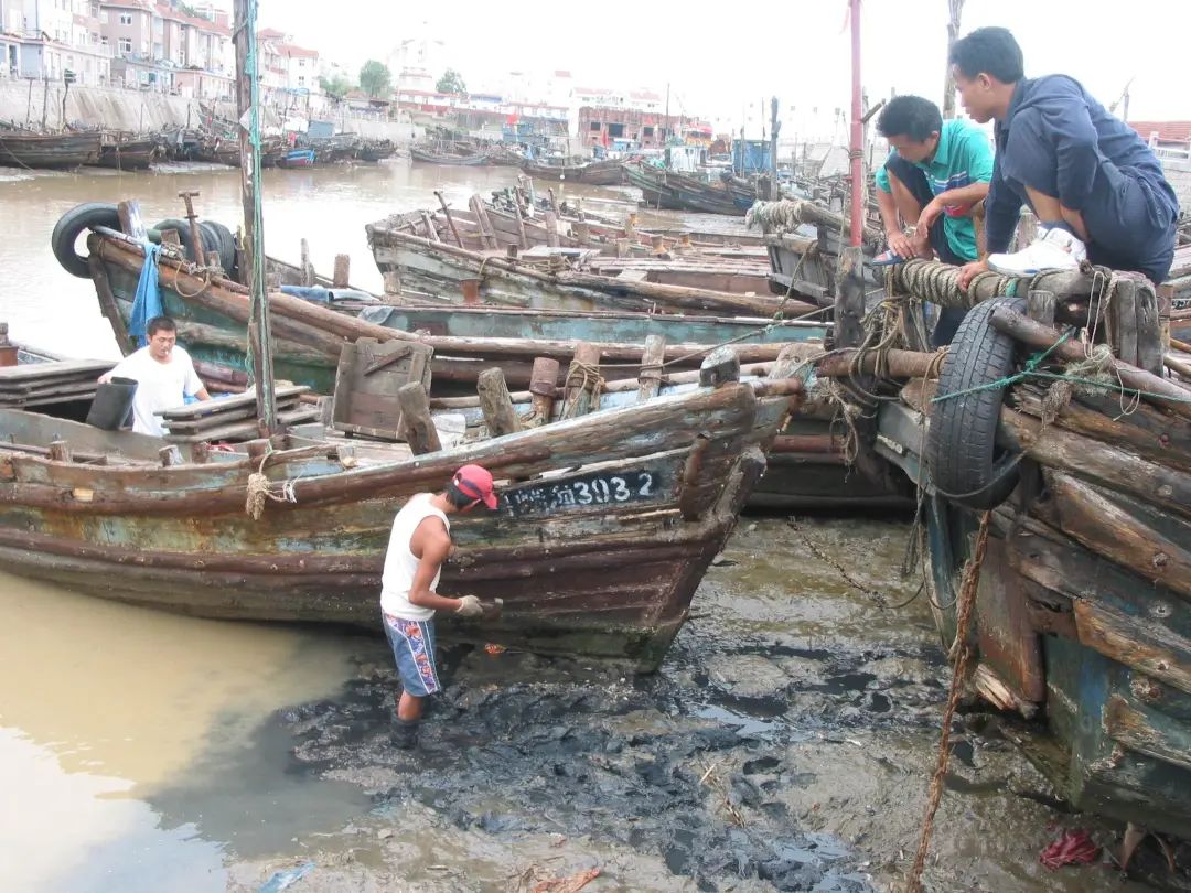 沙子口渔港,渔民在修理船只 赵健鹏 摄
