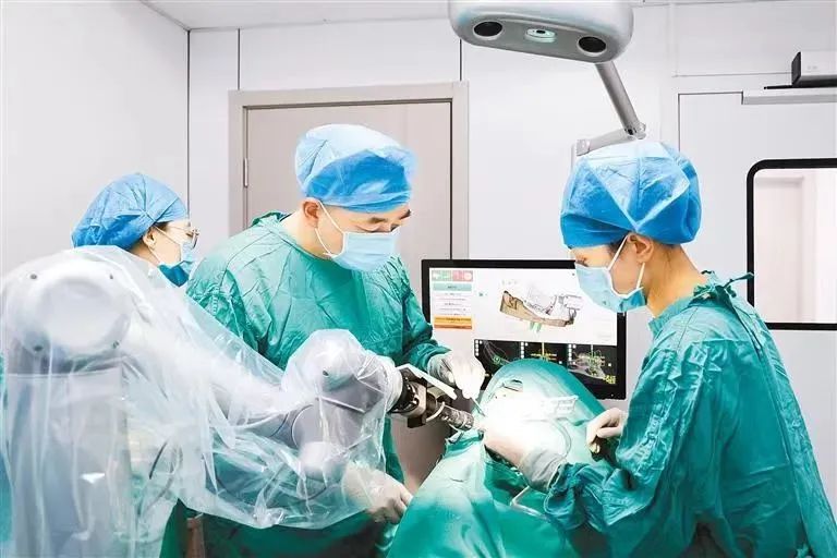 医生使用种植牙机器人实施手术 图源:光明日报