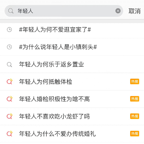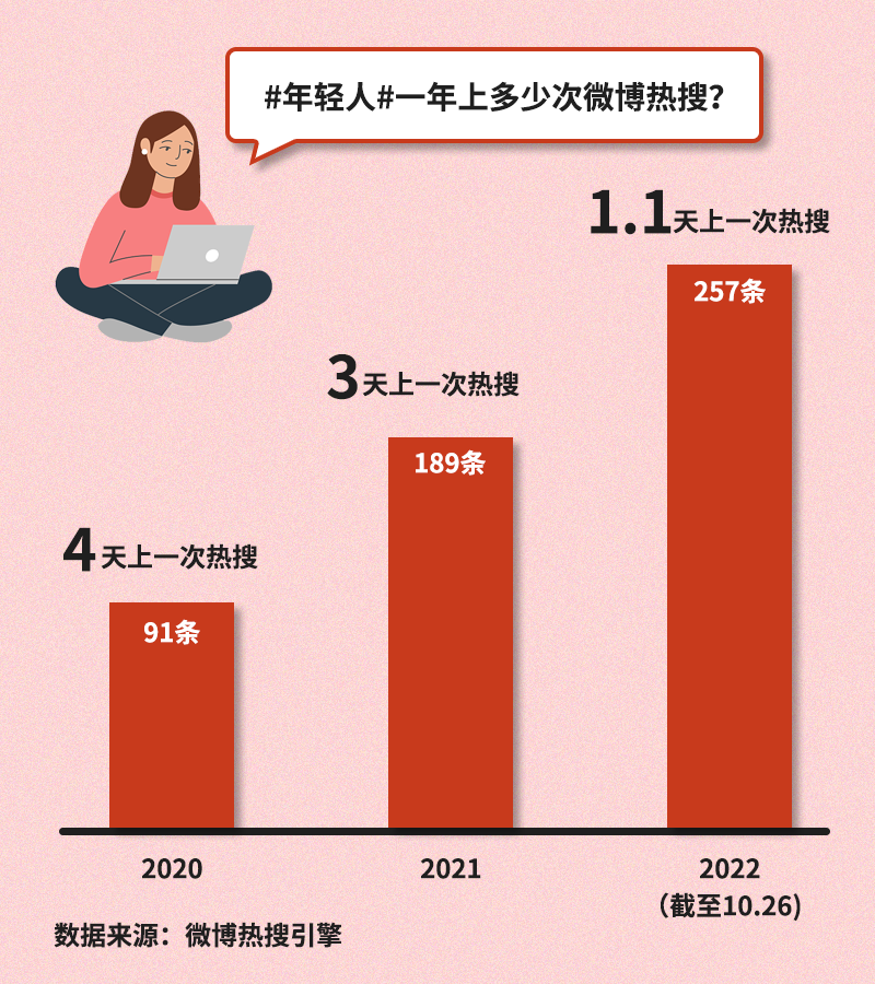微博热搜上,关于“年轻人”的话题越来越多 图源:九派新闻