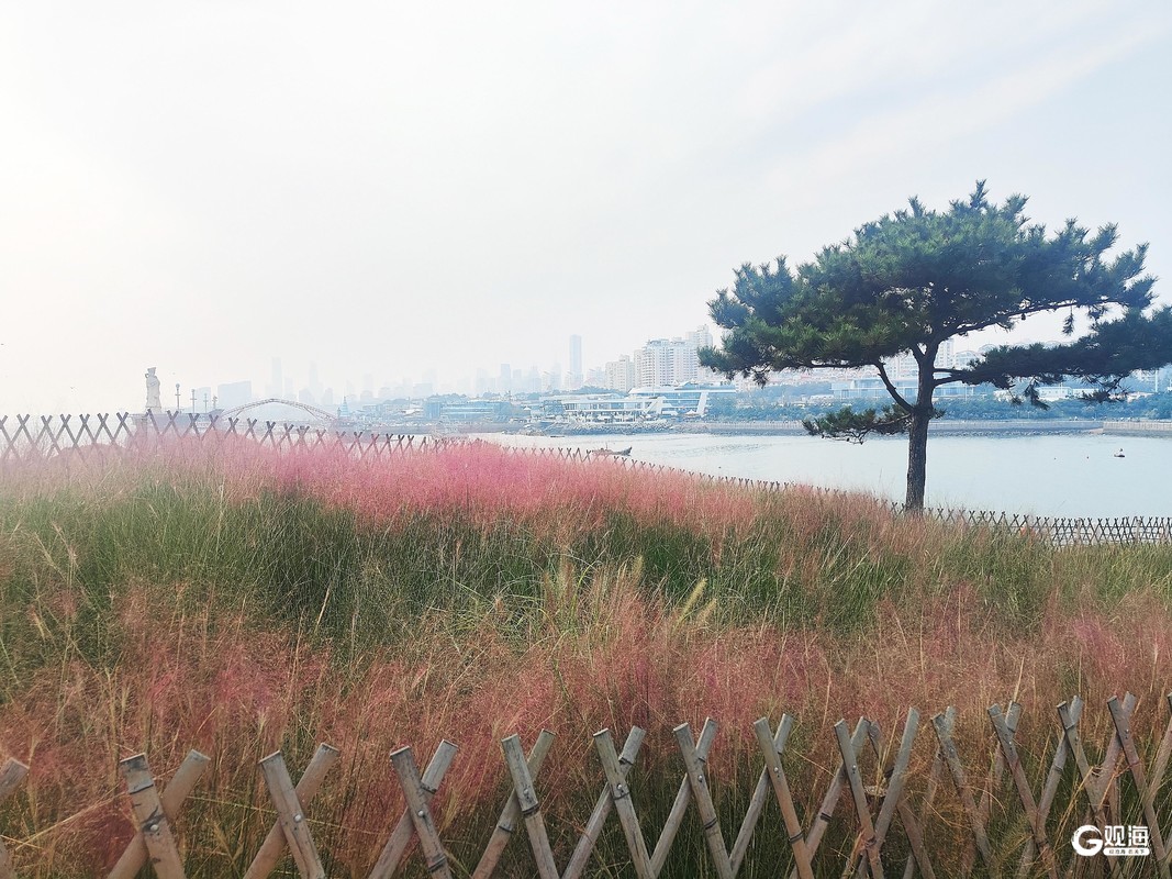 不同于春日百花的争奇斗艳,粉黛乱子草轻盈的粉色花穗如同云雾般萦绕在小径旁、笼罩在草地上,与茵茵的绿草、缤纷的野花、蔚蓝的海景交相辉映,构成了一幅幅令人心旷神怡的秋日画卷。