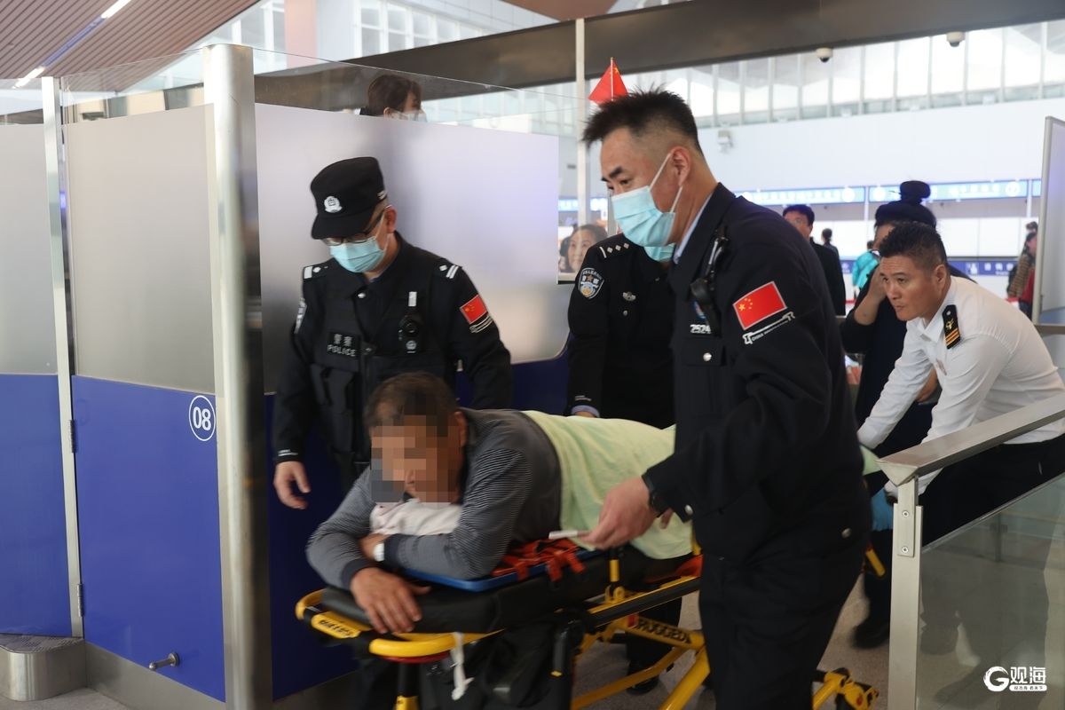 此外,在通关现场,青岛边检站接到代理求助称,该轮上的一名旅客意外受伤无法行走,急需就医。边检站按照预案开辟“绿色通道”,并第一时间对受伤旅客进行人证对照,为及时送医救治赢得宝贵时间。