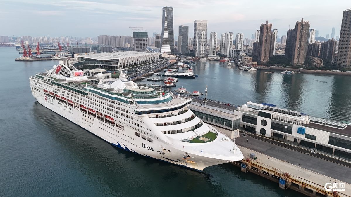 青岛日报社/观海新闻10月25日讯 今天下午,天津东方国际邮轮有限公司旗下“梦想 DREAM”号邮轮抵达青岛邮轮母港。