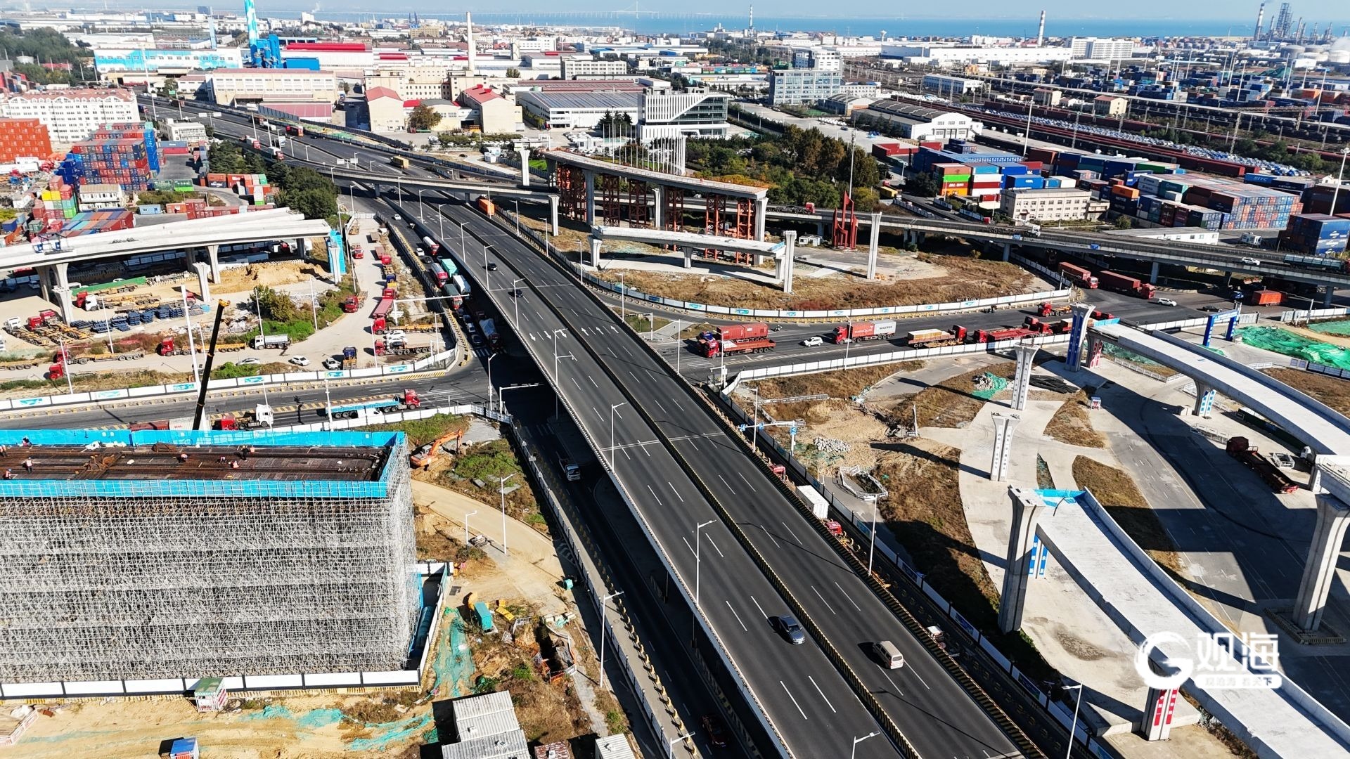 作为胶州湾第二隧道西海岸端配套工程,疏港高架拓宽及淮河路高架桥工程加速推进