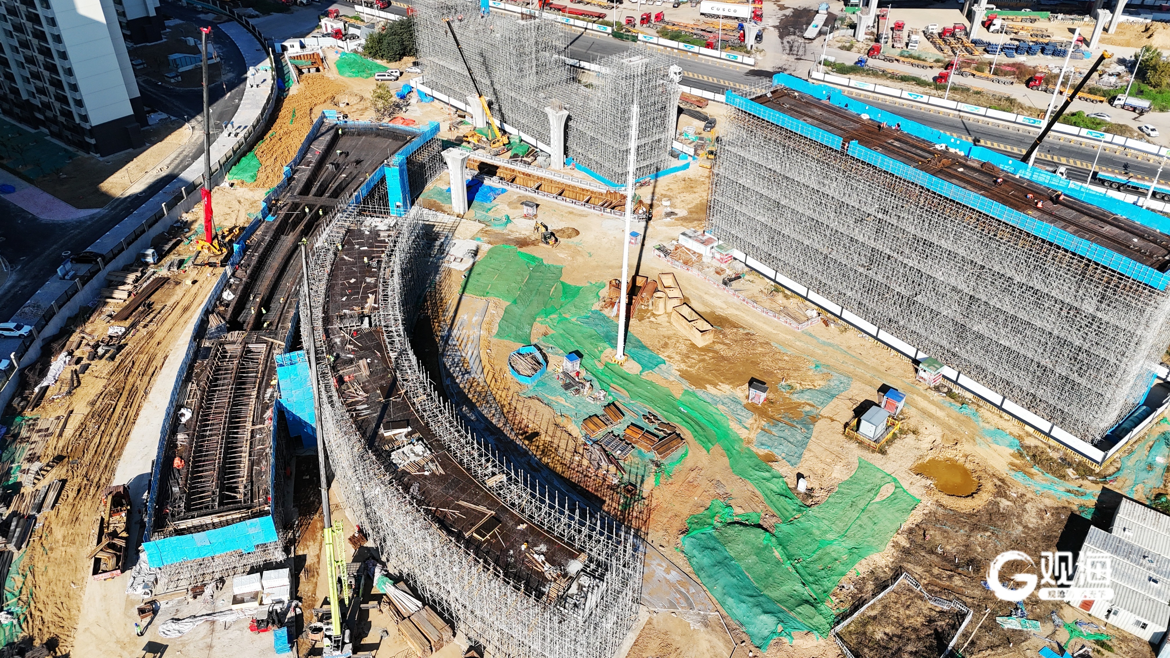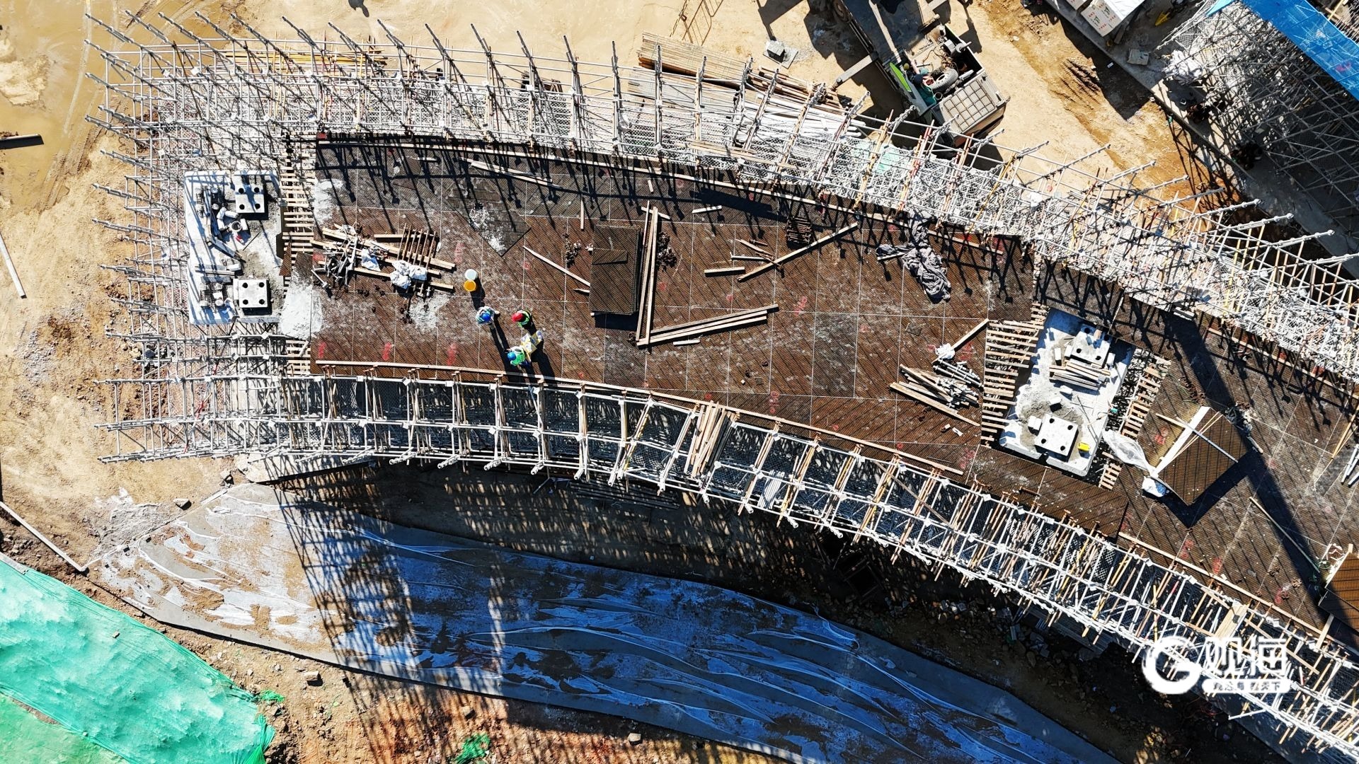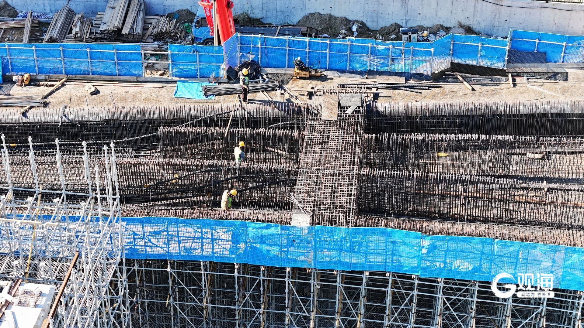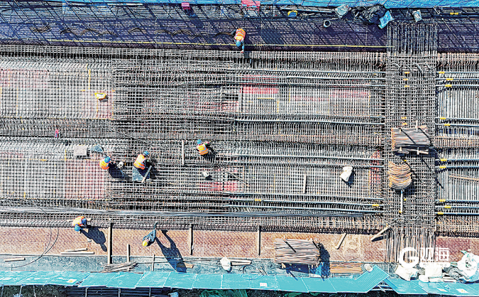 在淮河路高架桥工程项目二标段现场,机器轰鸣、吊臂起落,工人们正在进行桥梁上部结构施工,搭建支架、绑扎钢筋、浇筑混凝土,作业繁忙有序。淮河路高架桥工程西起江山路以西,东至前湾三号线,接胶州湾第二海底隧道收费站,全长约2.1千米。截至目前,主线桥梁已初露雏形,正在进行桥梁上部结构、附属工程和调流路等施工。