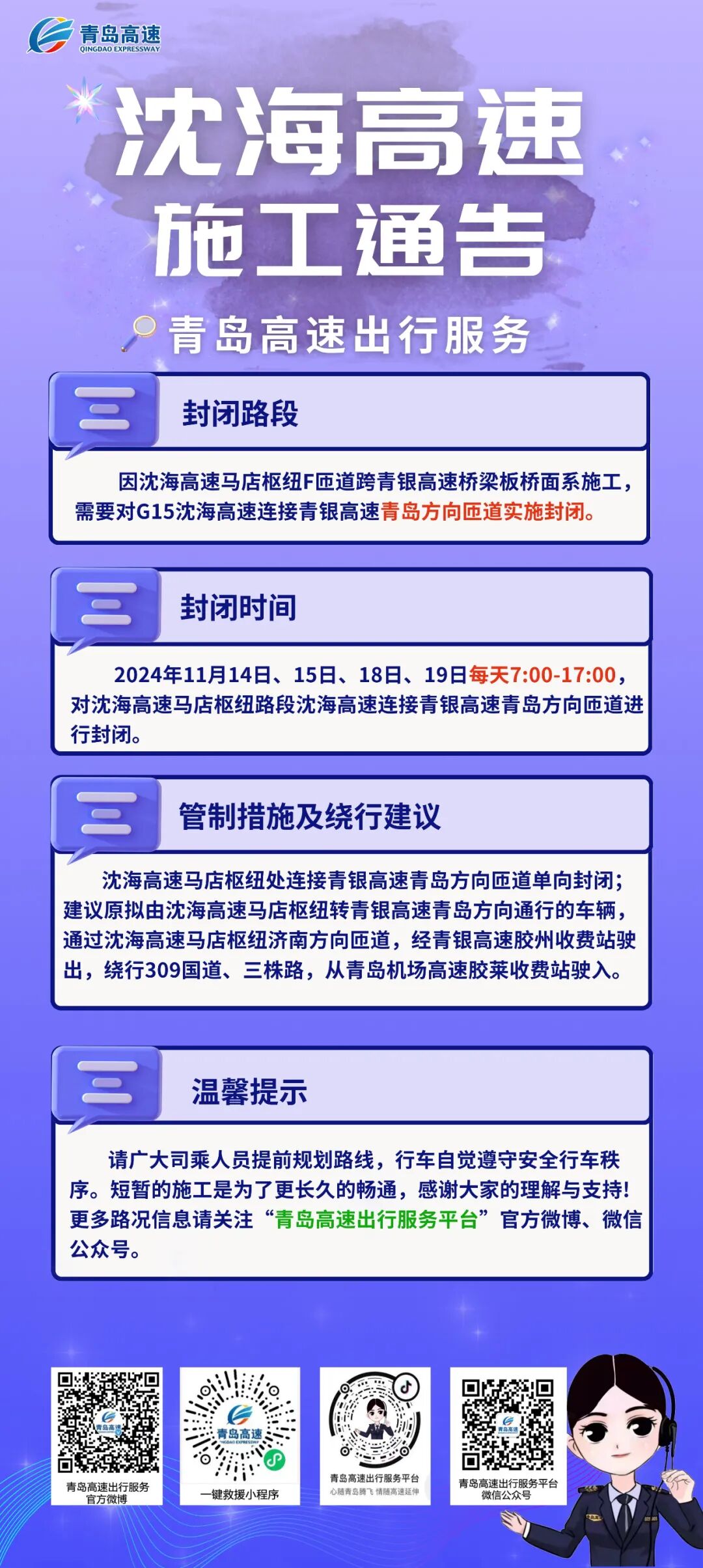 出行注意!沈海高速马店枢纽处沈海高速连接青银高速青岛方向匝道临时封闭→