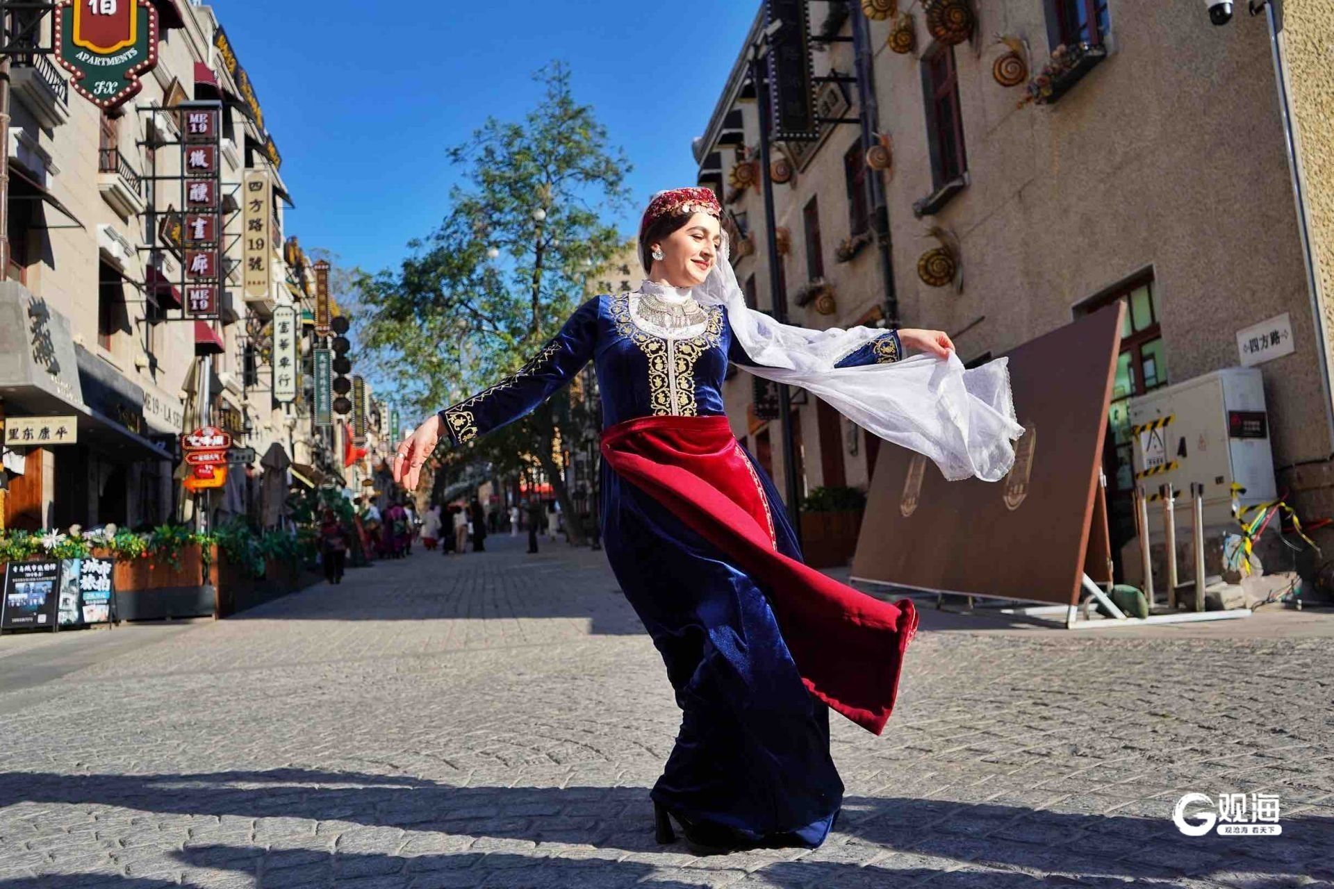 组图:上合组织国家特色民族服饰闪耀市南老城区。通讯员 董志刚 摄