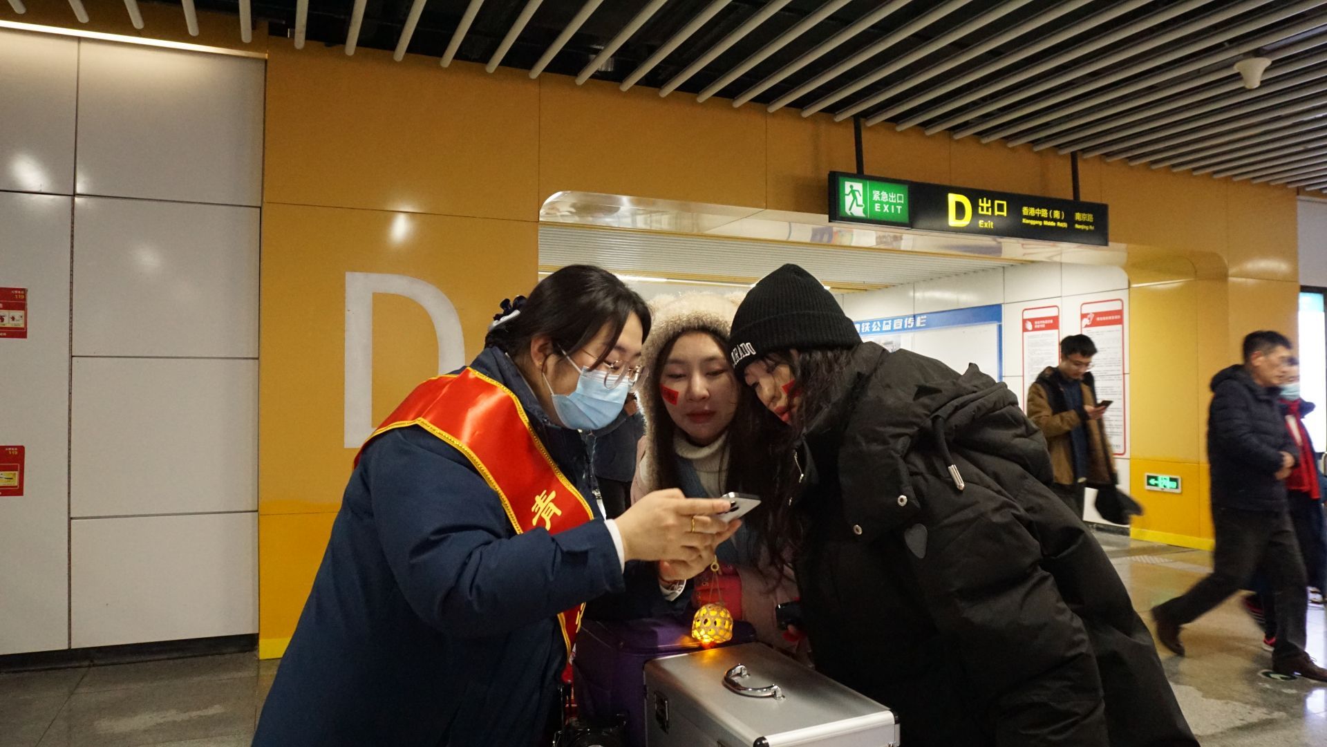 地铁员工为乘客提供帮助。