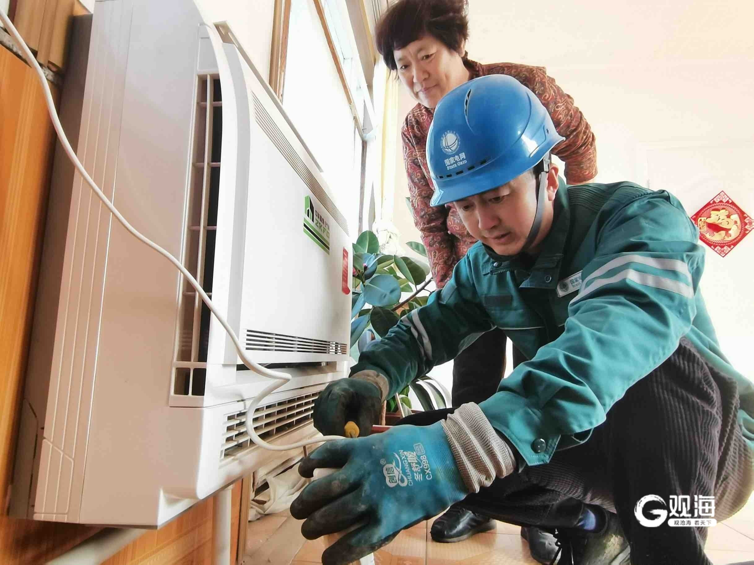 宋林在岛上居民家中检测清洁取暖设备。