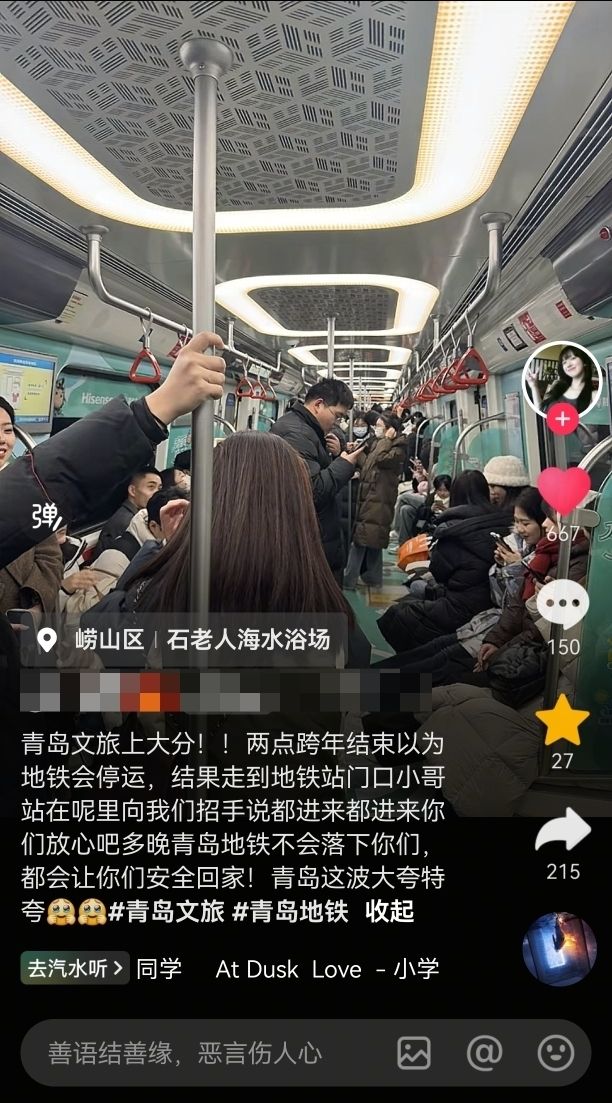青岛地铁用延时运营“辞旧迎新”