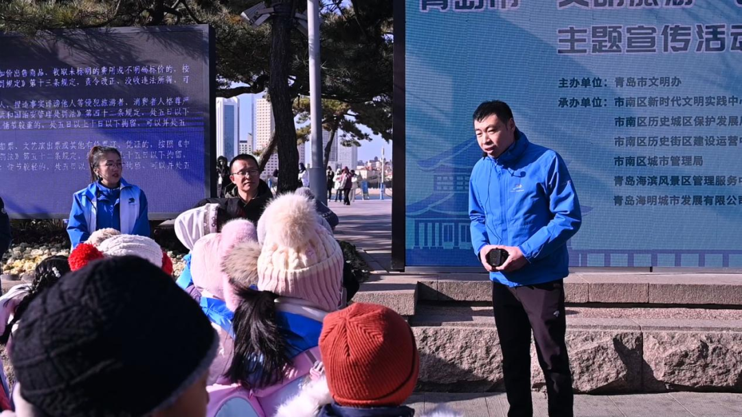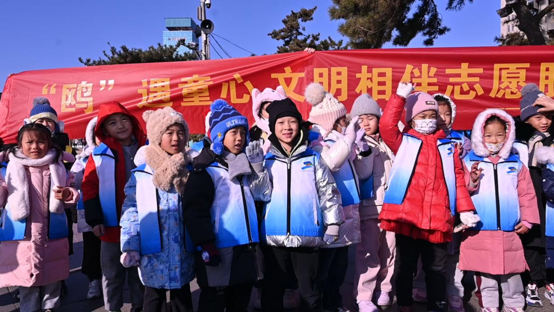 海鸥舞蹁迁,人鸥共和谐。1月9日上午,栈桥景区迎来了一群“小客人”——来自青岛大学路小学2024级2班的同学们。他们组成“护鸥”小队,集聚在栈桥景区,开展“‘鸥’遇童心 文明相伴”志愿服务活动。