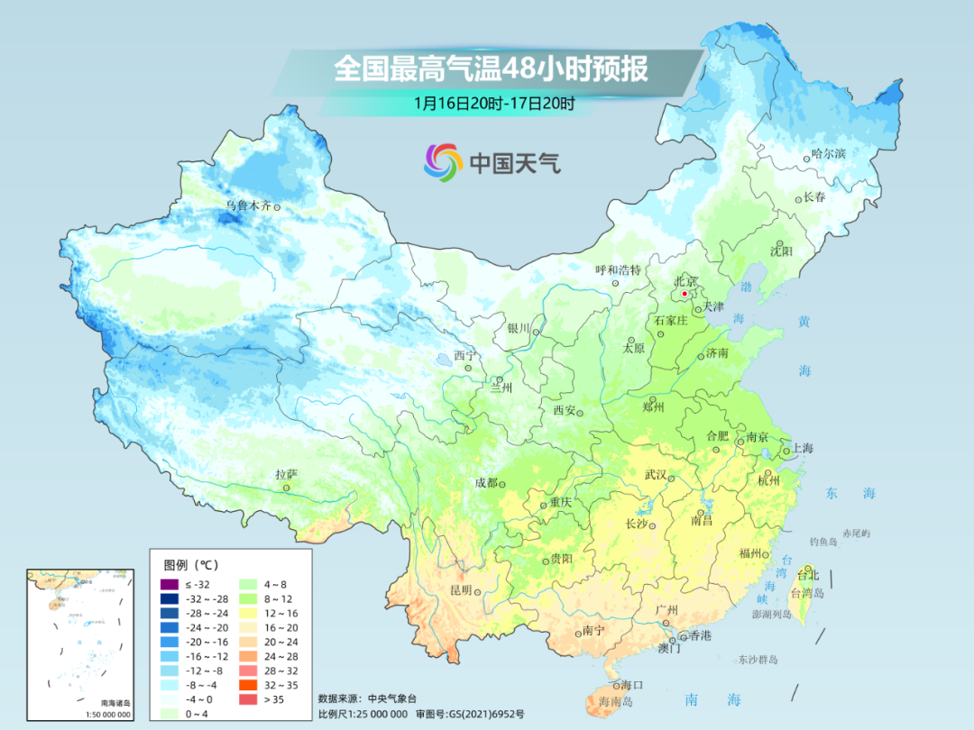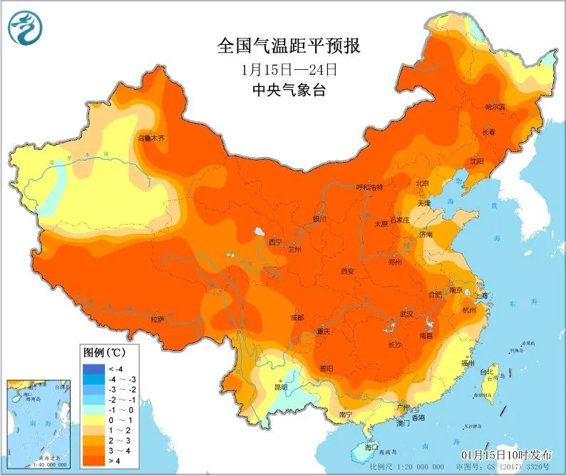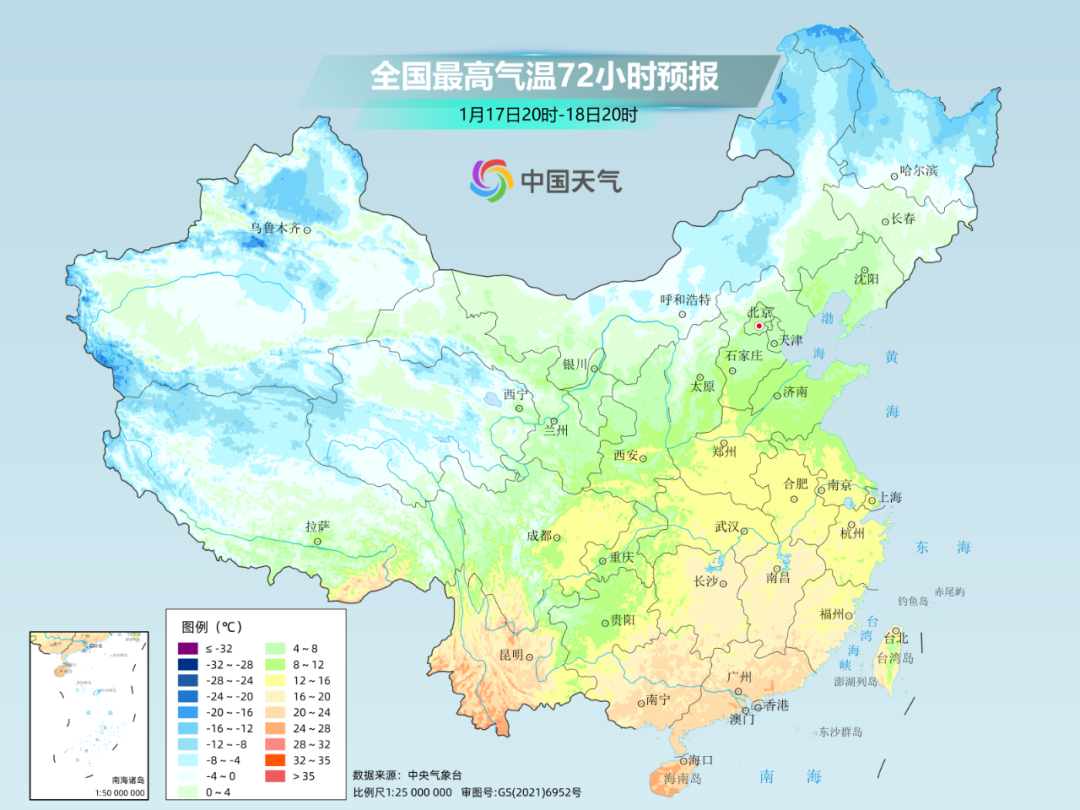 最高气温的回升尤为显著。预计16日至21日,大部地区最高气温累积升幅可达6-12℃;东北地区17日至18日,长江流域20日前后,最高气温将较常年同期偏高10℃以上。因此,无论是后天即将到来的四九,还是20日将迎来的大寒节气,都将以偏暖开场。