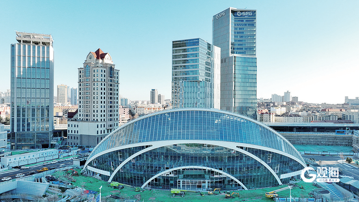 青岛国际邮轮母港区综合客运枢纽是交通运输部“十四五”综合客运枢纽项目库重大项目,“世界之眼”正是综合客运枢纽的重要组成部分。“世界之眼”占地面积约1.45万平方米,地上建筑面积2.9万平方米,建筑高38米,共5层。(青岛日报/观海新闻记者 邢志峰 摄影报道)