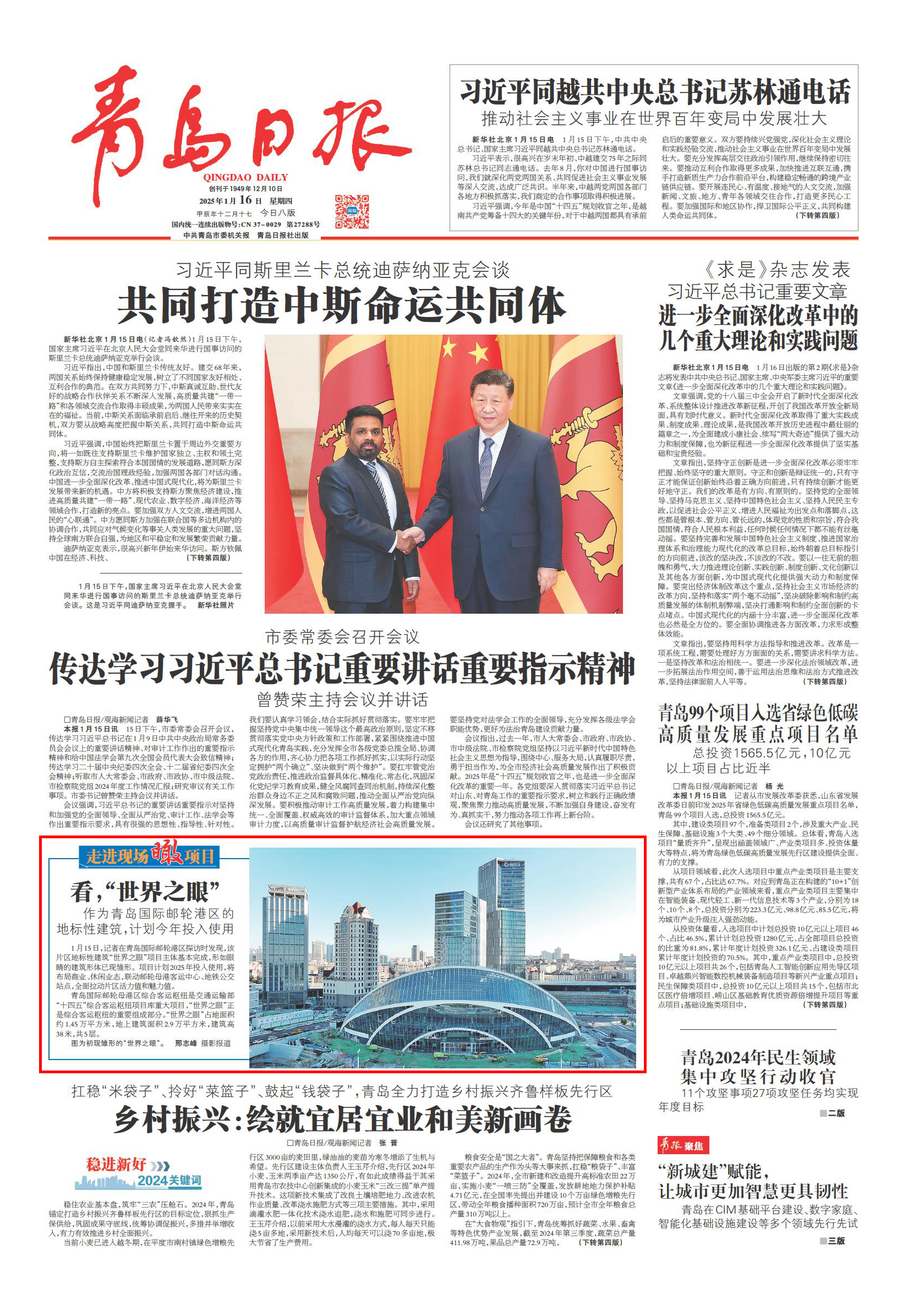 青岛日报2025年1月16日1版