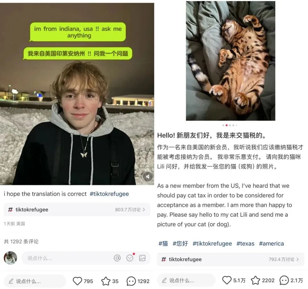 这两天,大批美国网友涌入中文社交平台——小红书,他们因为TikTok禁令而自称为“TikTok refugee(难民)”,喜气洋洋地进驻“新家”,小心翼翼地和中国网民打招呼。
