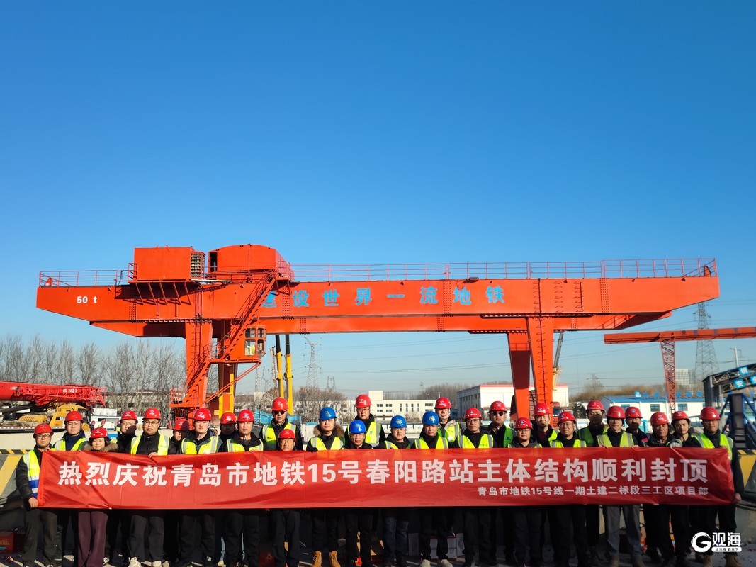 青岛日报社/观海新闻1月17日讯 日前,伴随着最后一方混凝土泵送入模,青岛地铁15号线春阳路站主体结构顺利封顶,标志着车站主体工程已全部完成,即将全面进入盾构区间、附属工程施工阶段。