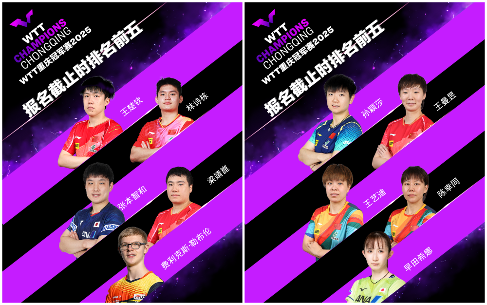 出现在这份名单上的是报名截止时男、女单世界排名前五的运动员,依据2月4日公布的国际乒联2025年第6周世界排名确定,最终种子排序将根据抽签时的世界排名决定。
