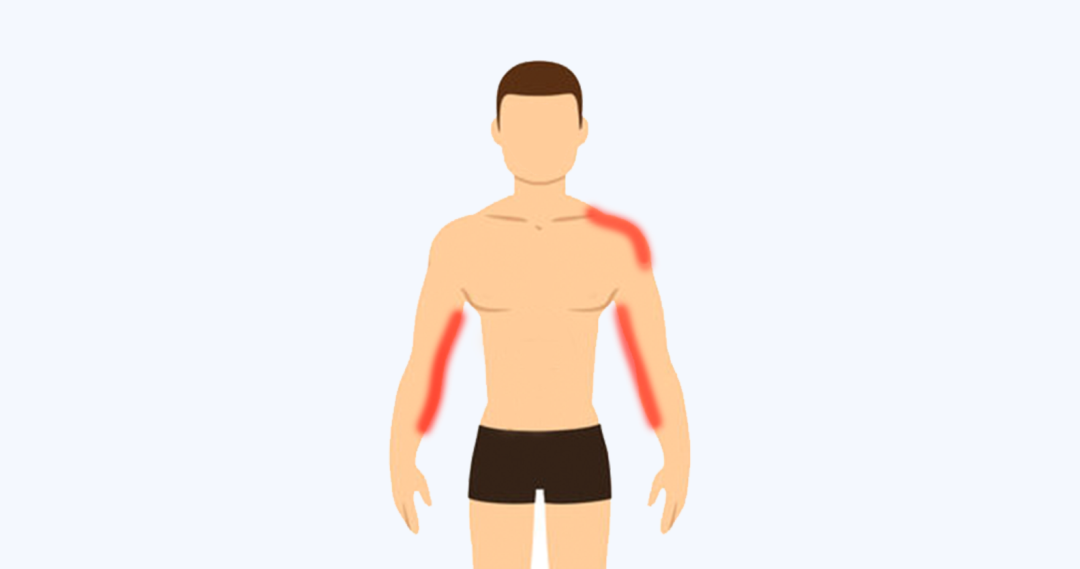 心脏缺血导致的疼痛,可能放射到左肩、手臂内侧、小指及无名指。