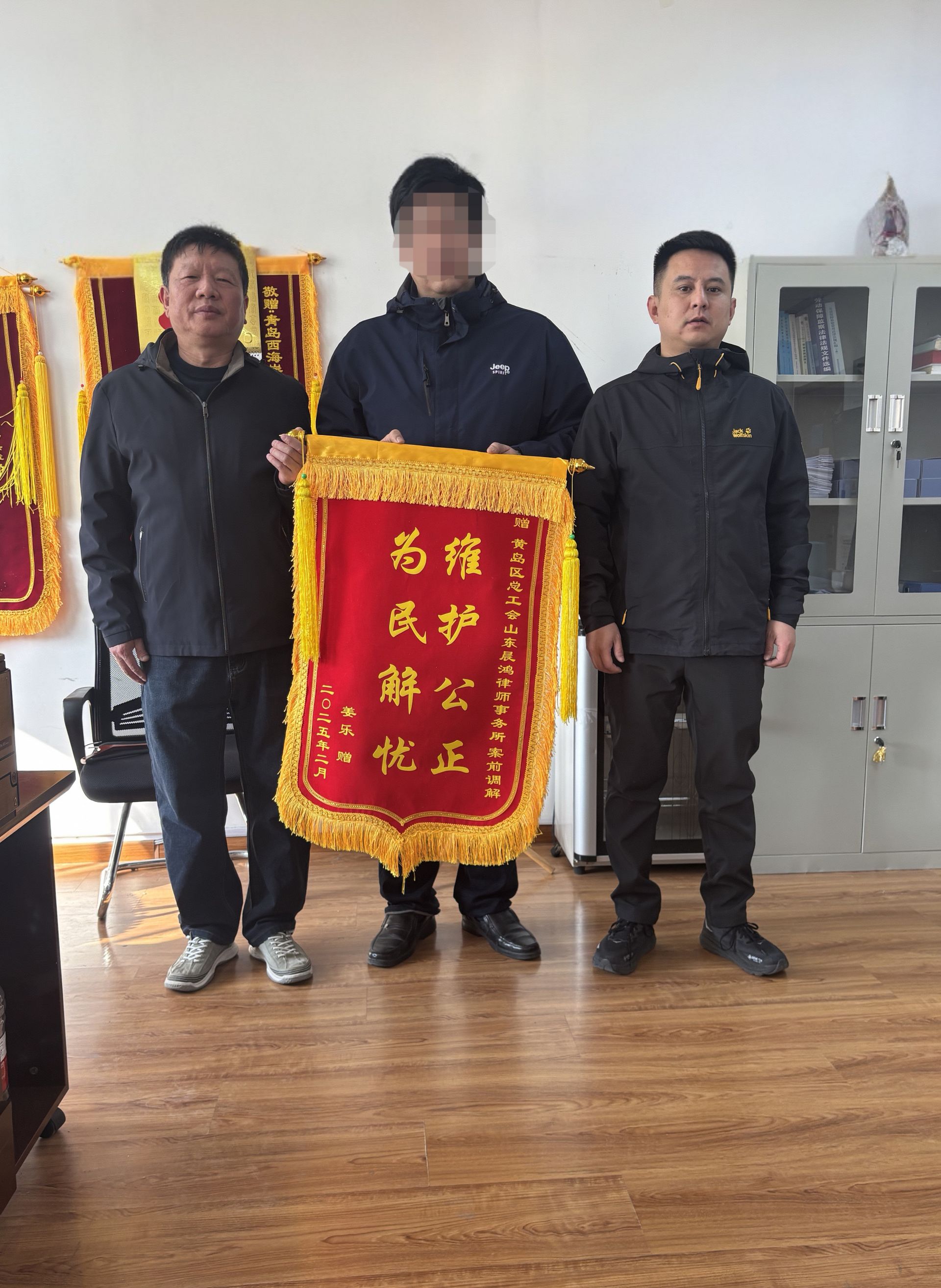 2025年2月11日上午,西海岸新区总工会迎来了一位特殊的客人——职工姜先生。他手捧一面写有“维护公正,为民解忧”的锦旗,满怀感激地走进了工会的大门。