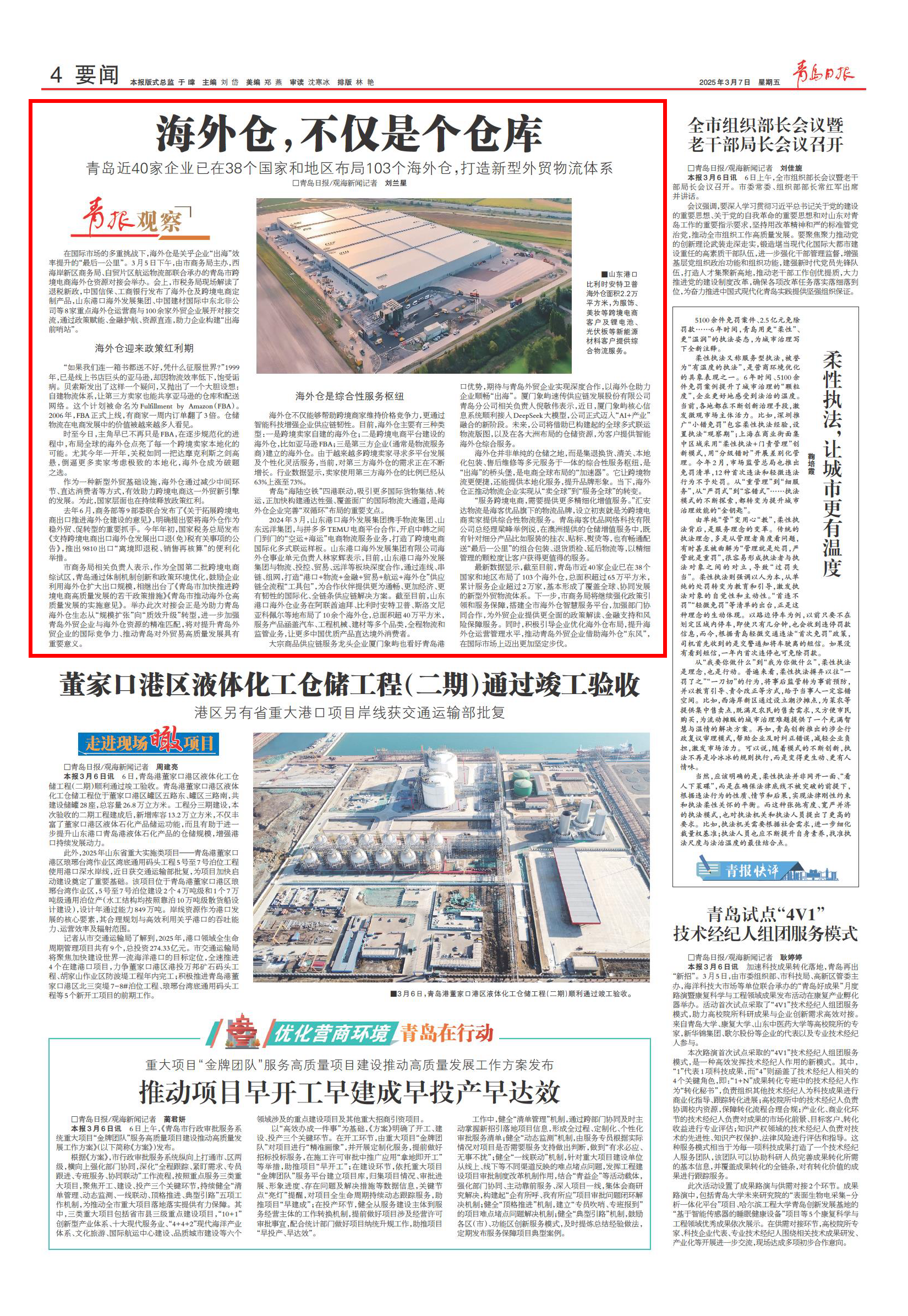 最新数据显示,截至目前,青岛市近40家企业已在38个国家和地区布局了103个海外仓,总面积超过65万平方米,累计服务企业超过2万家,基本形成了覆盖全球、协同发展的新型外贸物流体系。下一步,市商务局将继续强化政策引领和服务保障,搭建全市海外仓智慧服务平台,加强部门协同合作,为外贸企业提供更全面的政策解读、金融支持和风险保障服务。同时,积极引导企业优化海外仓布局,提升海外仓运营管理水平,推动青岛外贸企业借助海外仓“东风”,在国际市场上迈出更加坚定步伐。(青岛日报/观海新闻记者 刘兰星)