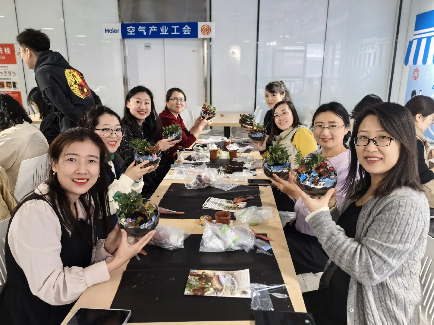 海尔空调工会组织130余名女职工参加了微景观盆栽Diy活动,大家在老师的指导下,纷纷动手,按照自己的构思打造了一个属于自己的绿色空间。活动中女职工学习了如何利用小型植物、苔藓、砂石等材料,打造属于自己的微型生态景观。同时活动邀请资深园艺师现场教学,分享微景观的设计技巧与养护知识。通过本次DIY活动,倡导绿色生活,提升环保意识。自己亲手打造的景观可以摆放在家中、办公室,劳累疲乏时抬头瞥见那一抹绿色,仿佛跌落到一个简单纯净的童话世界,心仿佛也变得惬意而慢下来。