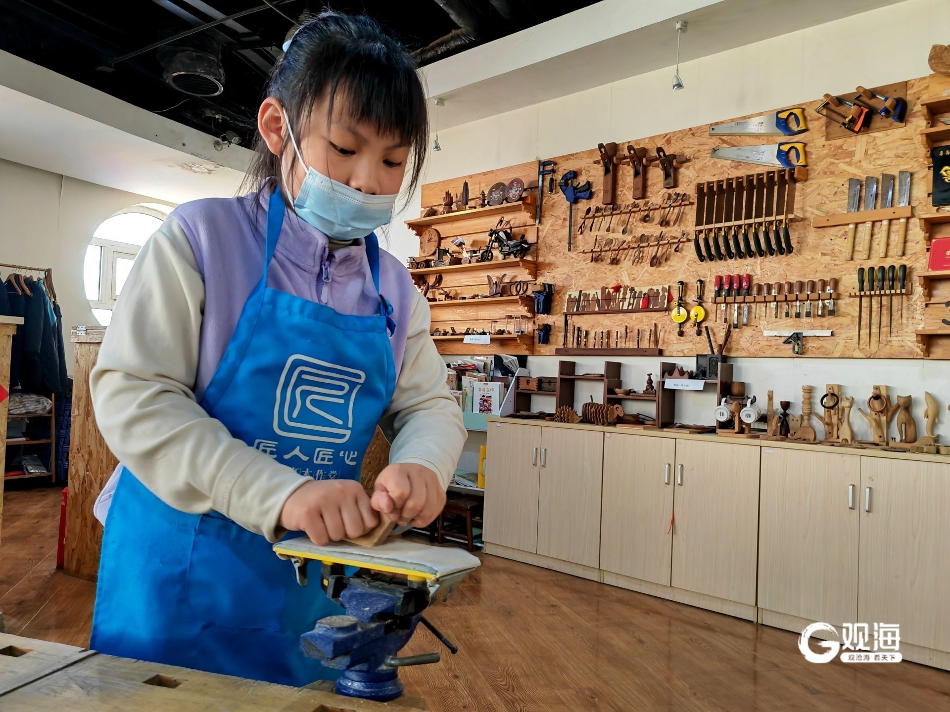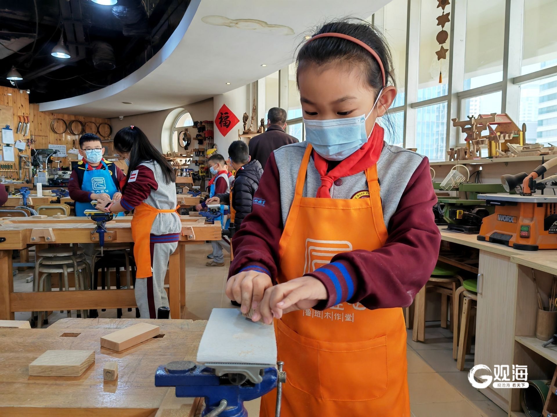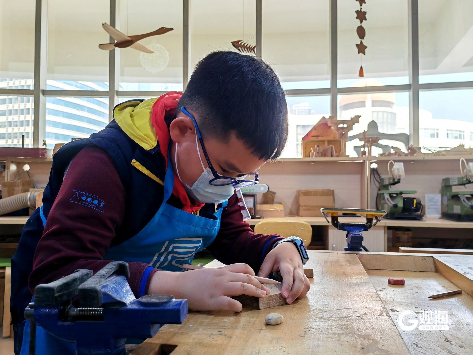 - 打磨、塑形、测量、组装、胶粘……一座立体小房子在小学生们手中诞生。3月9日,青岛市妇女儿童活动中心科技宫组织了一场别开生面的科创木艺公益活动,青岛大学路小学三年级1班的孩子们参与了此次研学活动。据了解,青岛市妇女儿童活动中心科技宫经常性地组织开展科创木艺、玩转科学、海洋科技等免费公益活动,为学校课堂提供更多课外实践机会,促进书本知识与实践相结合。(青岛日报/观海新闻记者 于滈 摄影报道)