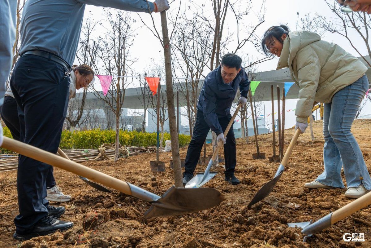 青岛日报社/观海新闻3月12日讯 春回大地,万物复苏。为深入贯彻落实绿色发展理念,助力城市更新建设,3月12日上午,在第47个植树节来临之际,青岛城发集团城市更新公司组织全体员工以及重庆高架路、重庆路道路两侧整治工程施工、监理单位代表共计60余人,在重庆路施工现场开展“党建引领植新绿 共育生态‘城市更新林’”植树节活动,同时也标志着重庆路道路两侧整治工程施工正式拉开2025年建设序幕。