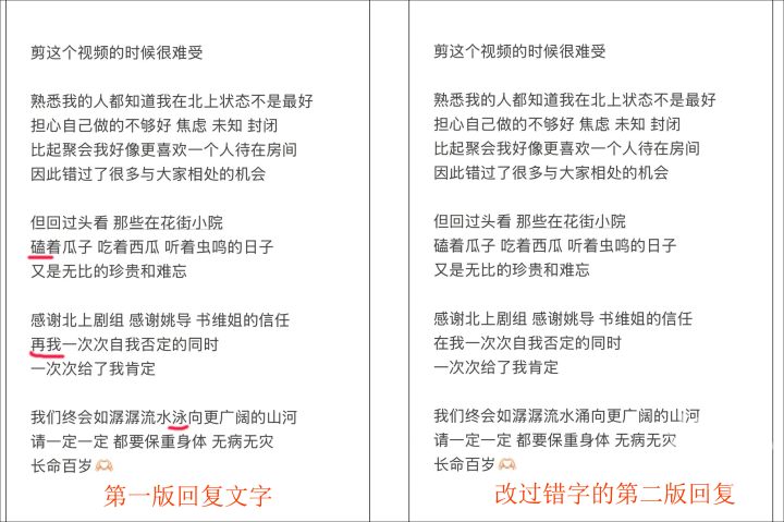 这些错误一曝光,白鹿随后又贴出错字修改后的文章,但“磕瓜子”的错误仍未修改。