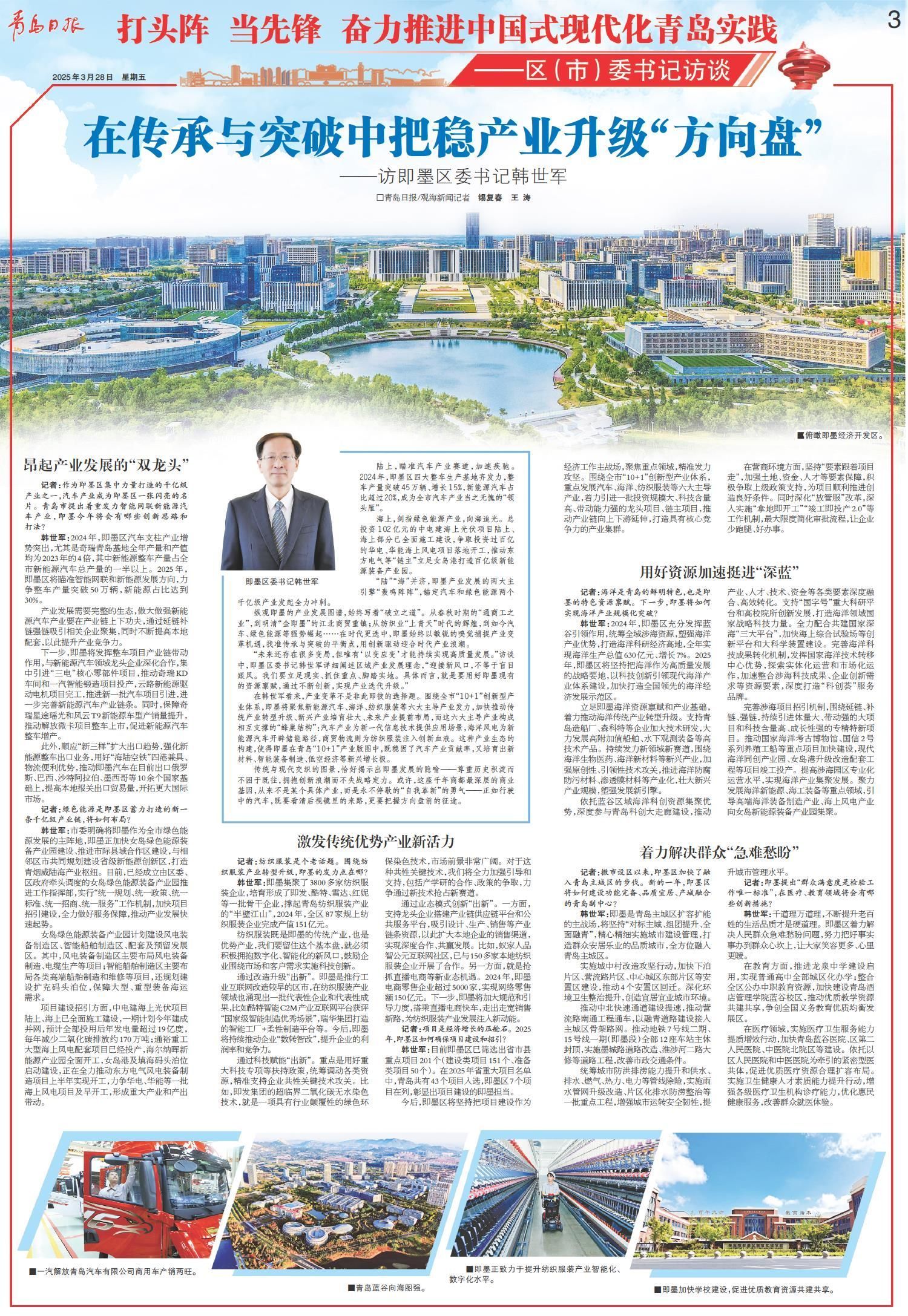 在传承与突破中把稳产业升级“方向盘”——访即墨区委书记韩世军