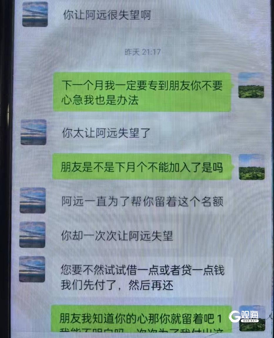几番沟通女子仍是深信不疑,民警想着联系其家人一同劝阻时,当事人拒不配合,无奈下民警准备联系其工作单位和老乡帮忙时,女子的态度才稍有缓和。经了解,当事人是大约两个月前在交友网站认识了这位陈姓男子,声称可以带着她投资赚钱,于是从没事的时候聊聊天、到每天早晚的问候,从关系愈加亲近到表达爱意。从当事人手机上的聊天记录可以看到,男子特别会“卖惨”,不时地发来一脸憔悴的视频,他描述为“相思成灾”;当事人无法满足其需求时,又发来吐血的视频,自称“寒心泣血”;最后一次现场和道具就更“精心”了,男子倒在车里,一脸的血迹,并称“为了你的事情,太疲惫了”导致开车时发生了交通事故,当然这都是骗子一次次要钱的由头。