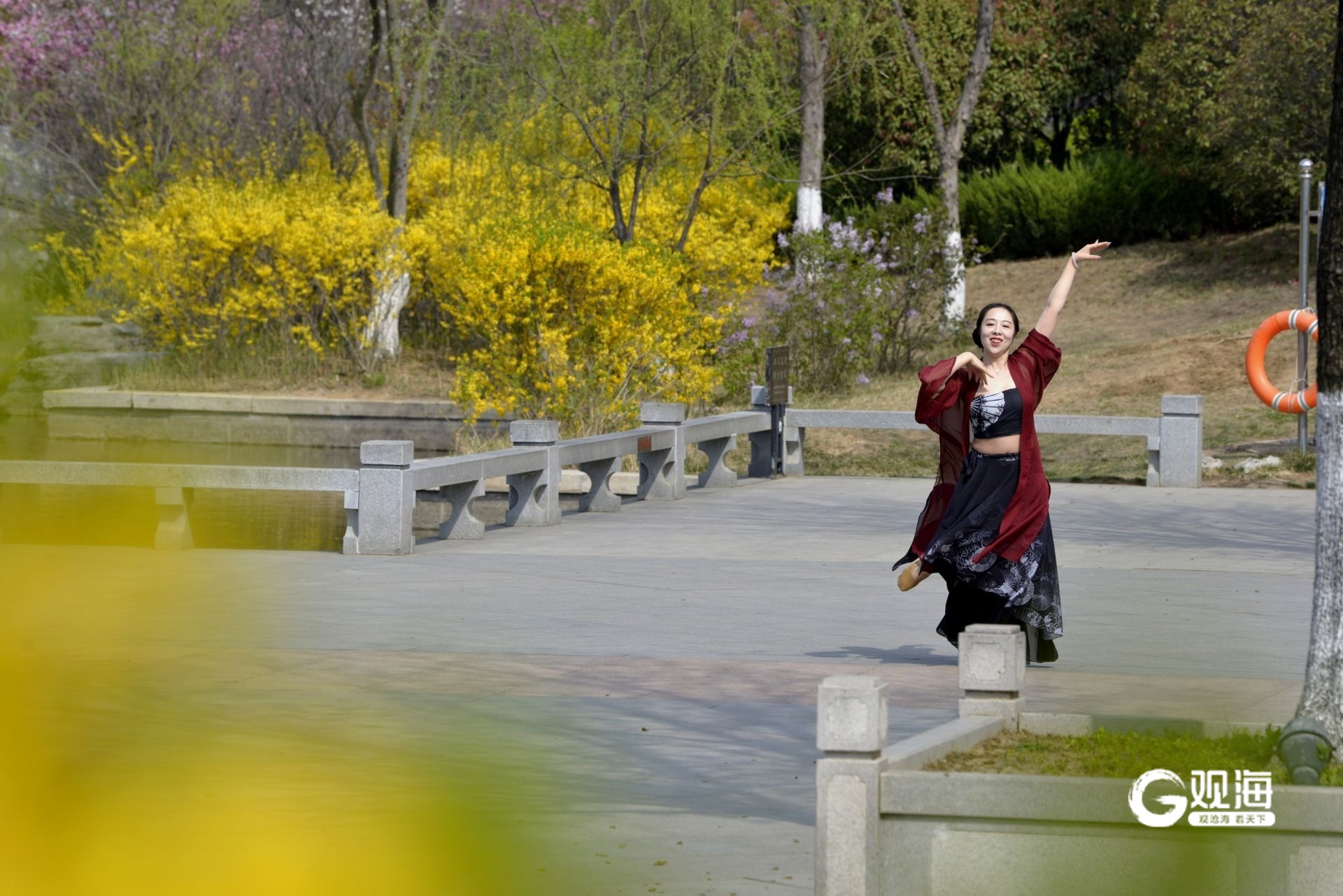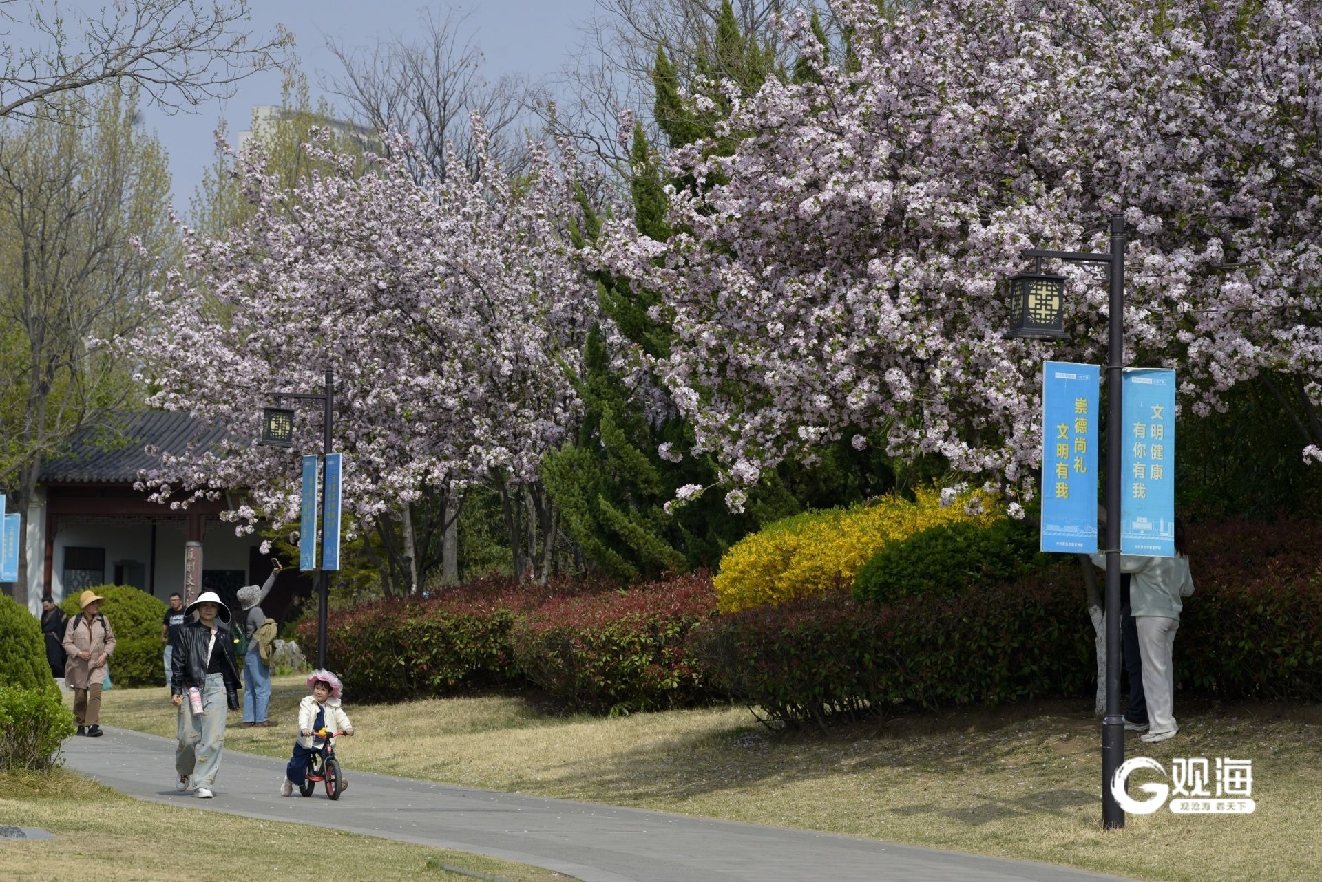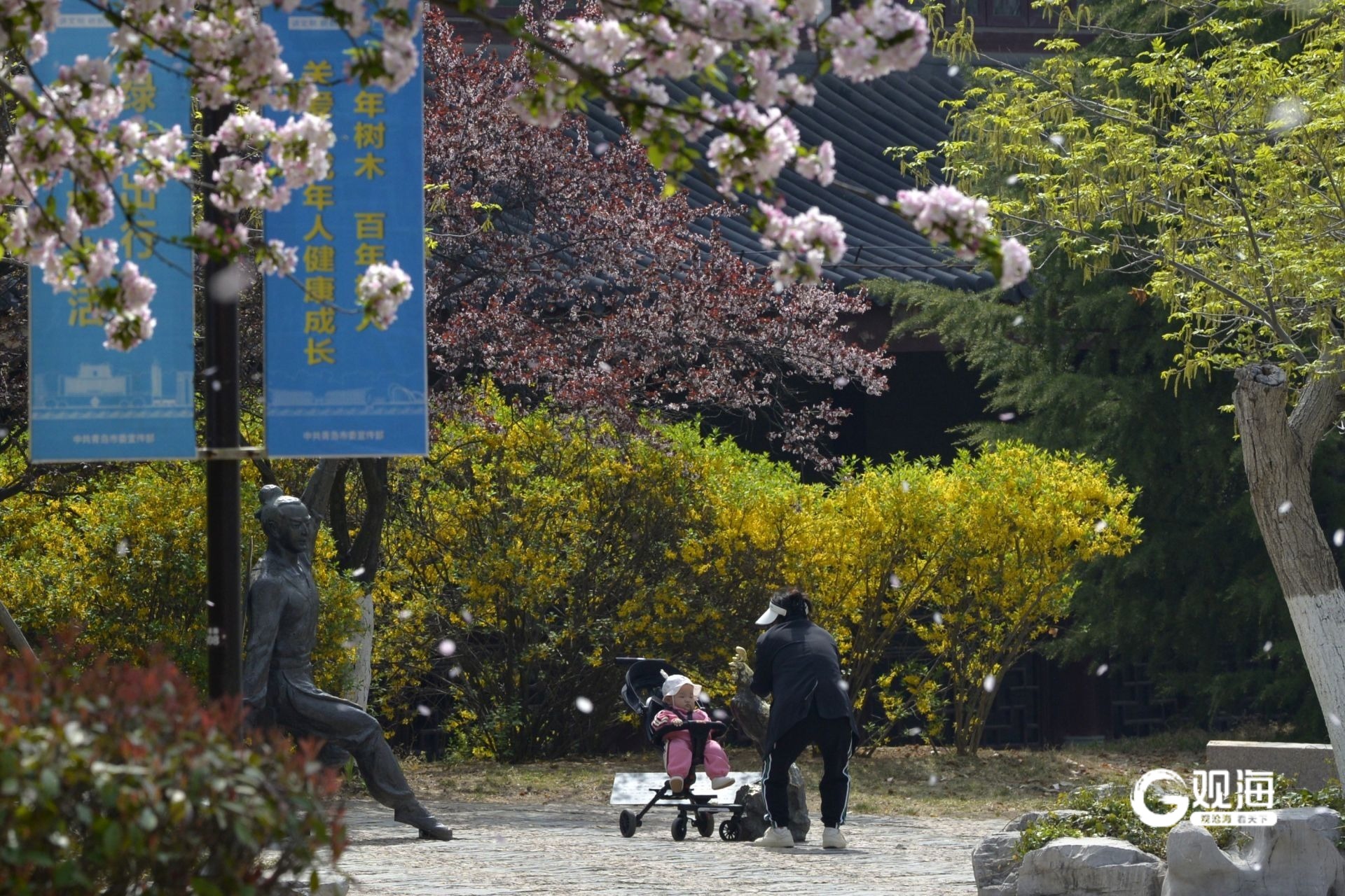 春风拂面,青岛这个国风公园开启繁花模式 ©原创 2025-04-10 13:48 青岛日报社/观海新闻 于滈 紫荆花满枝簇拥,紫叶李花开似雪,海棠花粉艳娇俏……眼下,青岛城阳国学公园迎来繁花盛景,鲜花争奇斗艳,与古色古香的建筑相映成趣。市民漫步其间,既能饱览缤纷花景,又能领略传统文化韵味。(青岛日报/观海新闻记者 于滈 摄影报道) 国风的建筑特色是国学公园里的看点之一。 公园内处处充满古典美。 游客在公园内取景拍照。 海棠花挂满枝头。 市民在花海中徜徉。 小桥流水别有韵味。 公园内有很多名人雕塑。 花瓣如雪花落下。 市民在园内起舞。 垂柳吐出嫩芽。