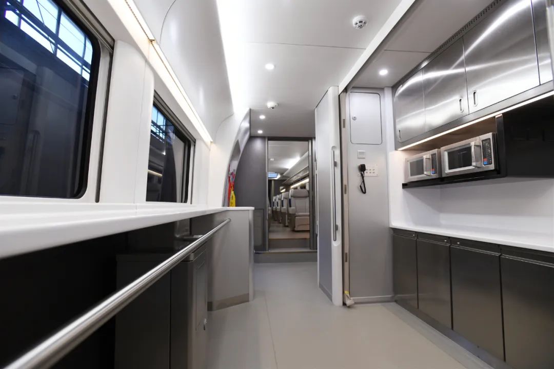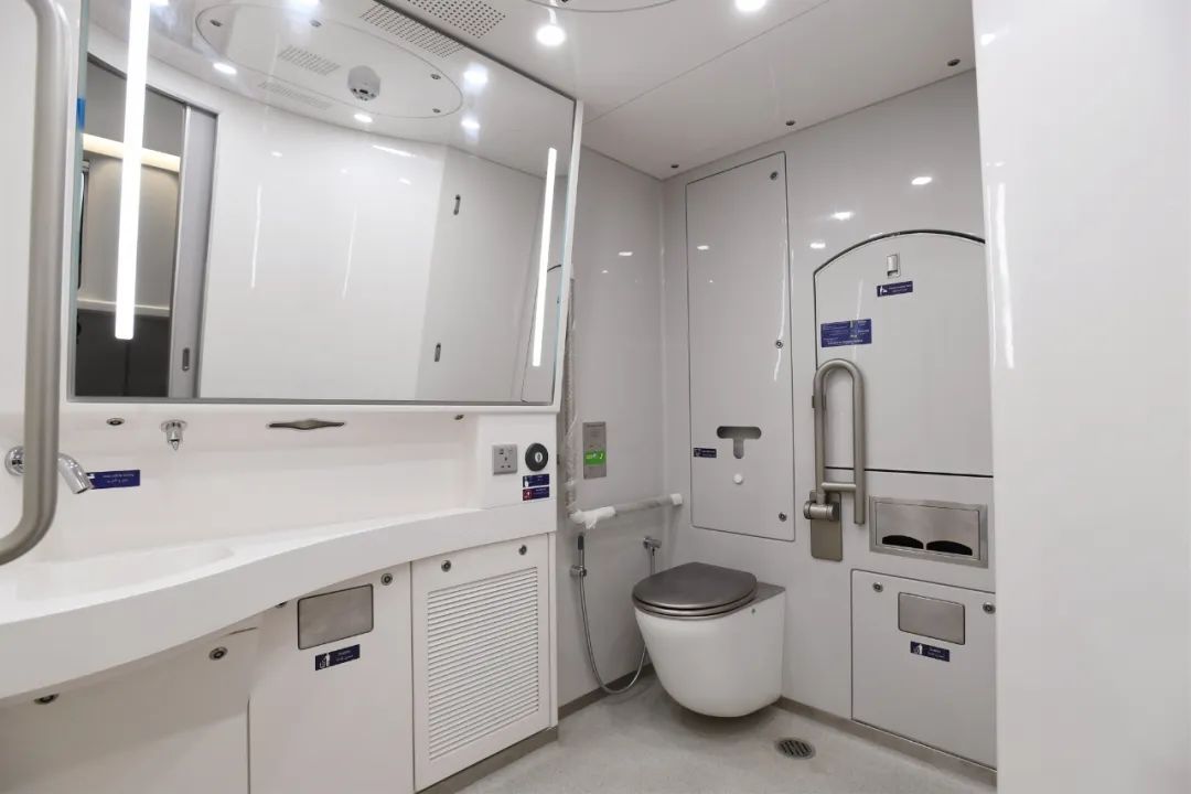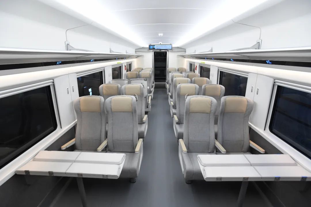 设计人性化。车厢空调系统增强制冷能力,可在60℃高温环境下将车内温度保持在23℃以下。车厢座椅基于人机工程学设计,提高舒适度。服务设施完善,WIFI系统、充电插座、USB接口、LCD显示屏、阅读灯、小桌板等一应俱全,带来便捷的乘坐体验。此外,专门设有车门间隙补偿器、车厢无障碍区,满足特殊人士乘车需求。