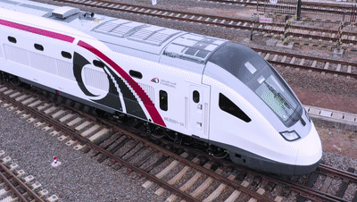 阿联酋高速内燃动车组,由中车四方根据当地铁路运营环境和需求为阿联酋“量身定制”,设计运营时速可达200公里,不仅在全球同类产品中速度最高,且具备耐高温、防沙尘等独特技术优势,是国际先进的现代化高速内燃动车组。