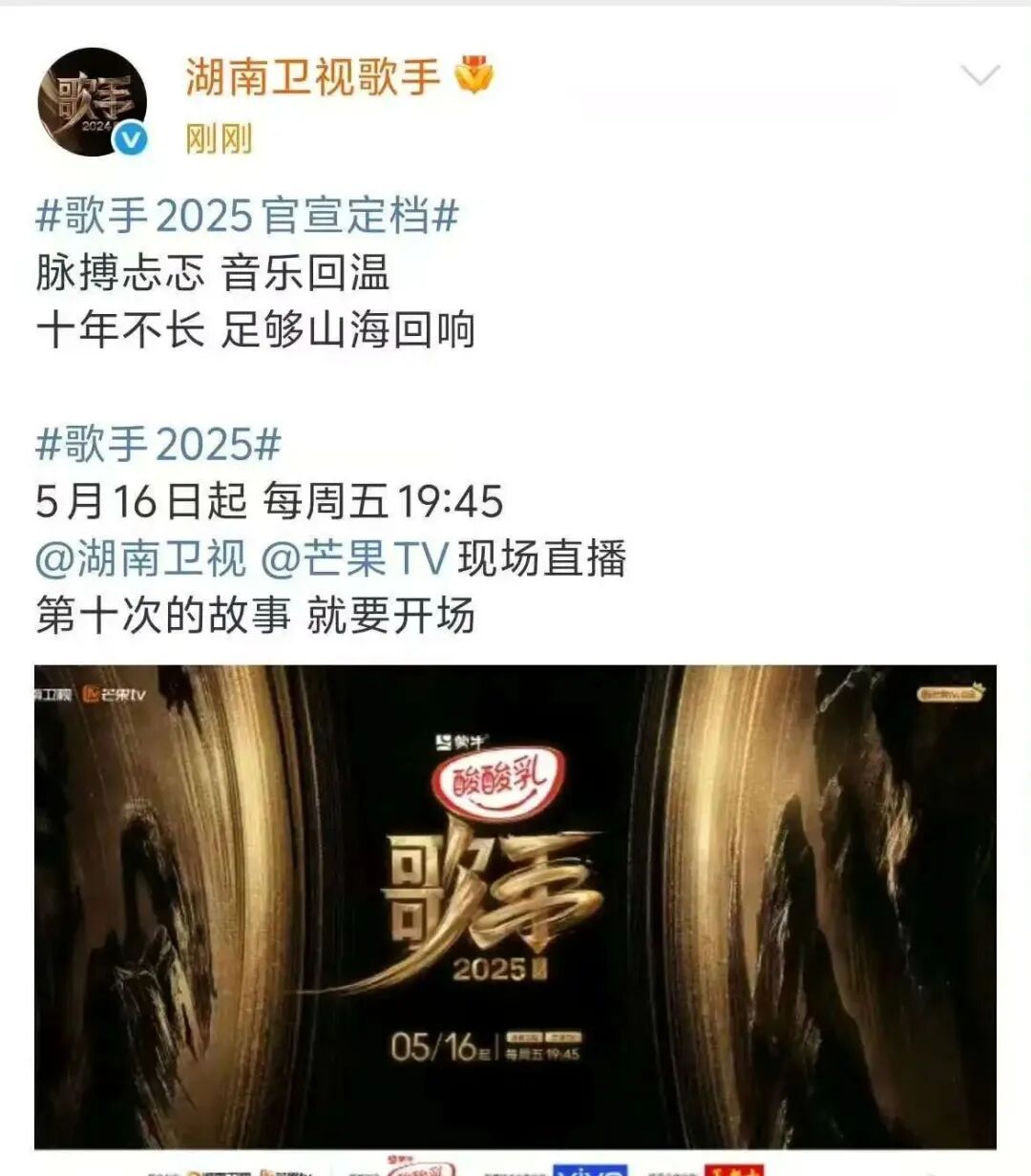 刚刚,《歌手2025》官宣定档5月16日,首发歌手为陈楚生、白举纲