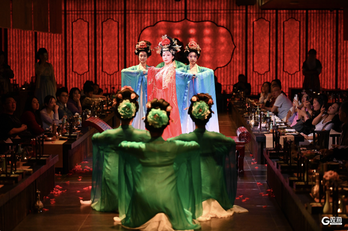 前不久开业的兰齐宴赋,作为青岛首家大型沉浸式文化餐秀,将沉浸式文旅、餐饮与博物馆相结合,让消失的宫廷美学以可触可感的方式重现。“五一”期间,不少游客前来预约打卡,“终于理解了古人所说的‘歌舞升平,把酒言欢’的感觉。在千年文化盛宴中,体验视听与味蕾的双重享受,不仅是美食体验,更是文化传承。”来自厦门的大学生王婷婷欣赏了换装表演后,在社交媒体上分享自己的感受。(青岛日报/观海新闻记者 曹森 通讯员 赵广爱 韩雪)