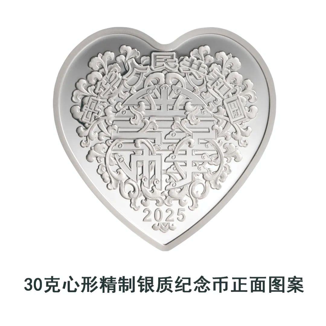 30克心形银质纪念币为精制币,含纯银30克,外接正方形边长40毫米,面额10元,成色99.9%,最大发行量40000枚。