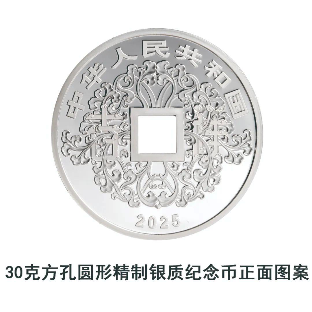 30克方孔圆形银质纪念币为精制币,含纯银30克,直径40毫米,内孔7毫米×7毫米,面额10元,成色99.9%,最大发行量20000枚。