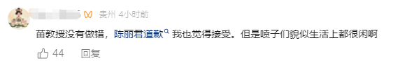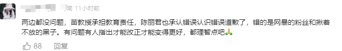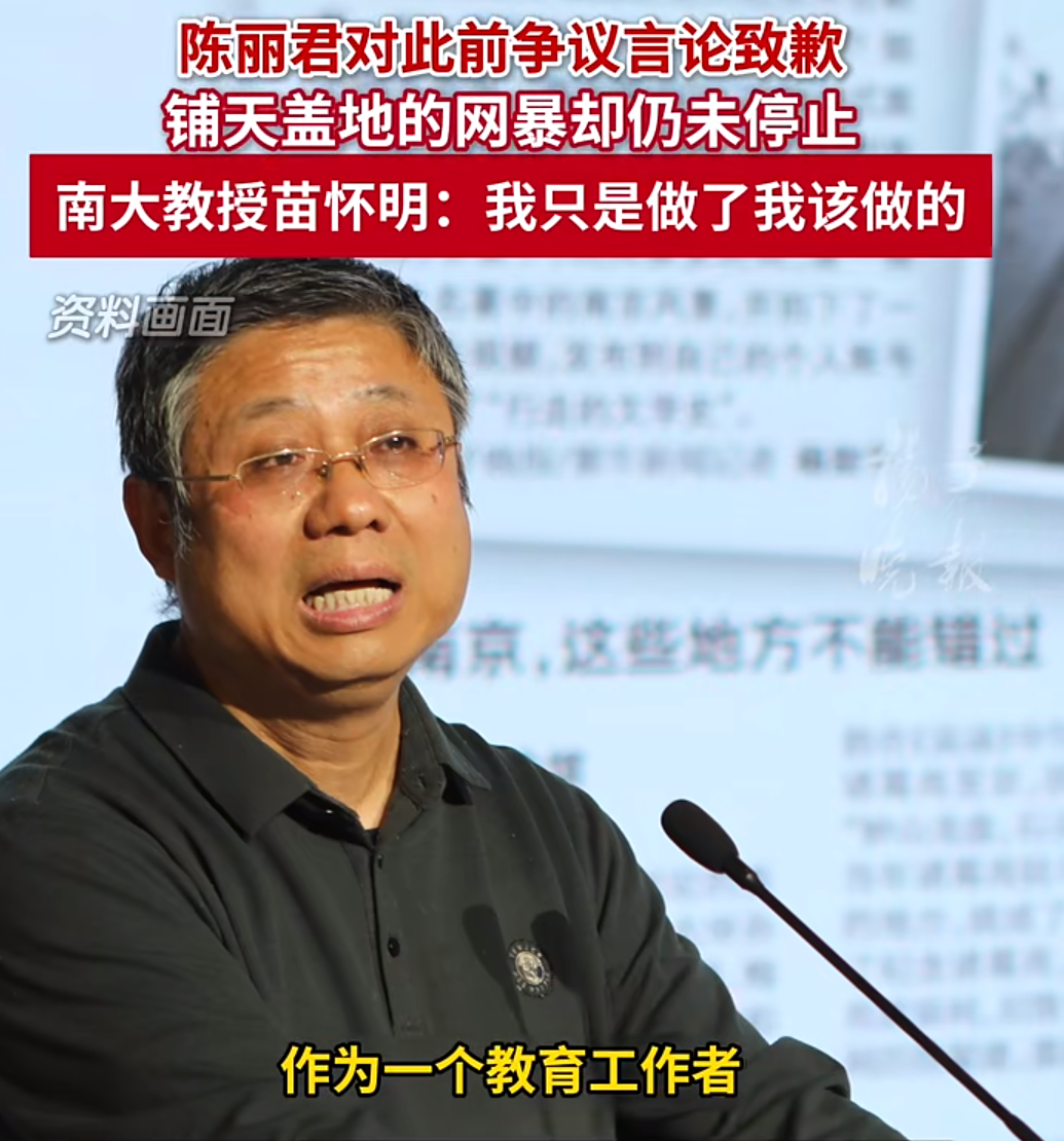 苗怀明表示,“我的疑问是,首先,陈丽君说错了吗?第二个问题是,说错了,难道不能指出问题吗?第三个问题,陈丽君道歉了,这几天一直在铺天盖地骂我、骚扰我的粉丝,是不是该给个说法?”