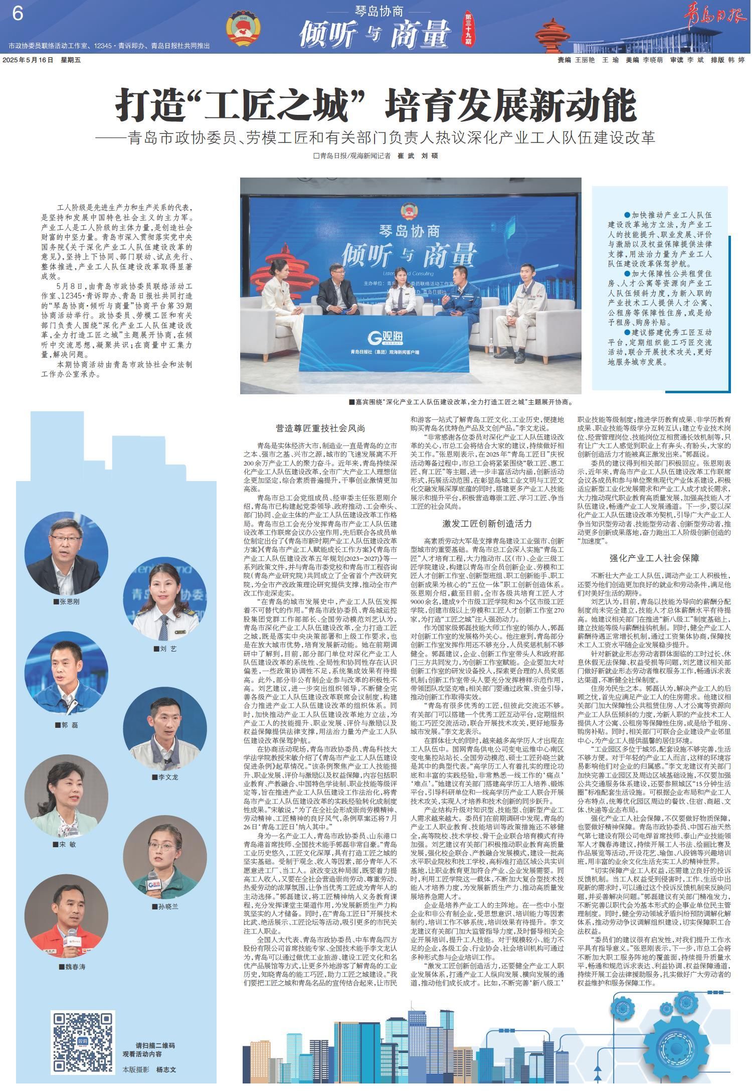 ——青岛市政协委员、劳模工匠和有关部门负责人热议深化产业工人队伍建设改革