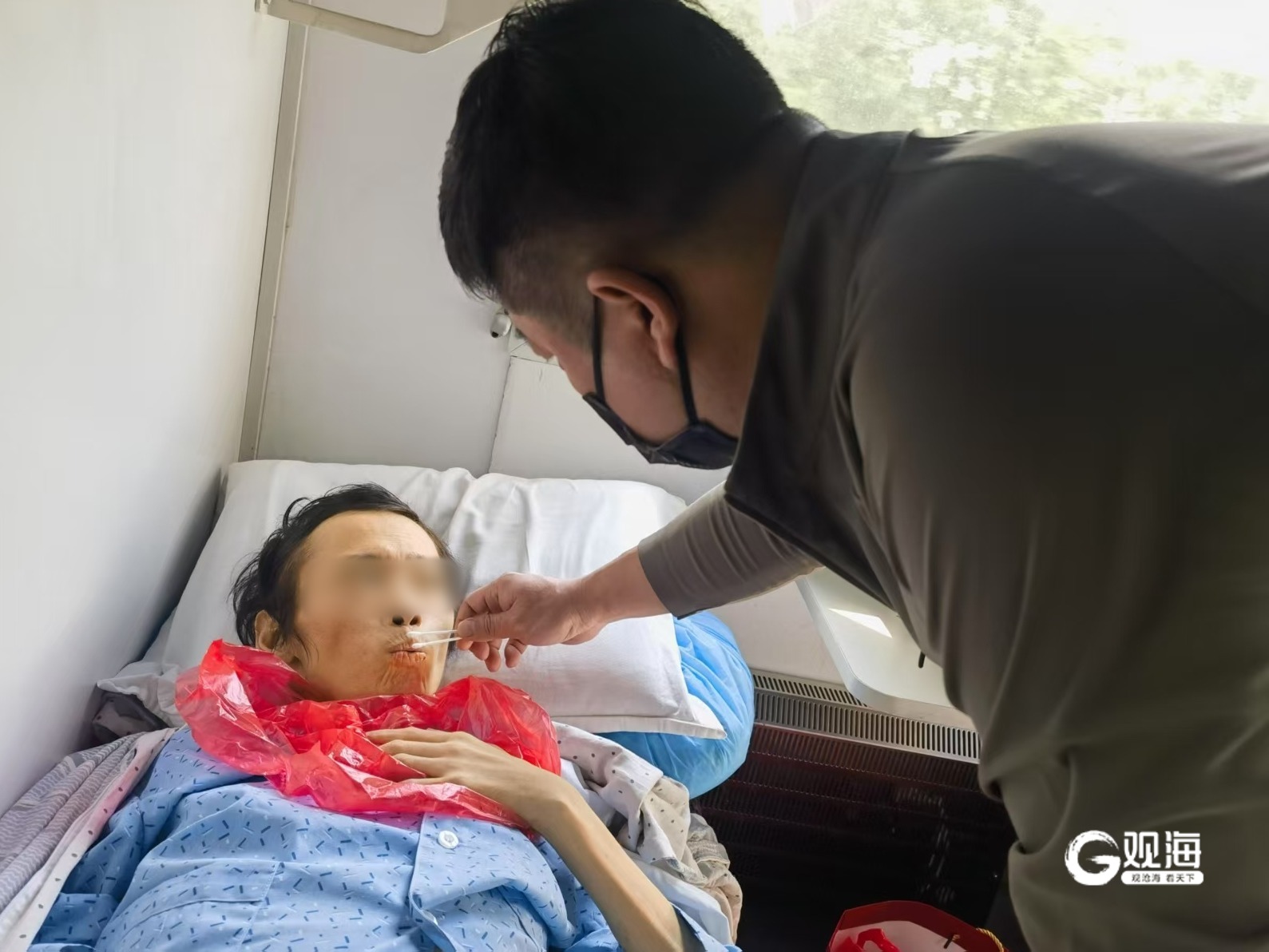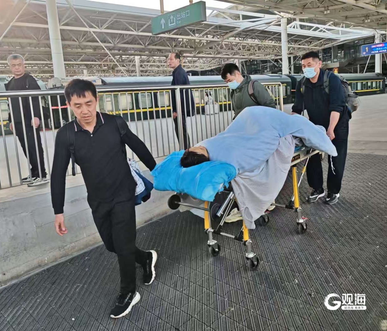 为圆满完成这场护送任务,青岛市救助服务中心仔细研判,组建经验丰富的护送队伍。上下火车、台阶过道处,4名工作人员握牢担架抬至胸前缓行;高铁列车上,协调列车长临时设置两排座位安置担架;列车中转时,用人墙遮挡闫某如厕;一路上悉心照料闫某进食,用棉签蘸温水润湿闫某干裂的嘴唇……