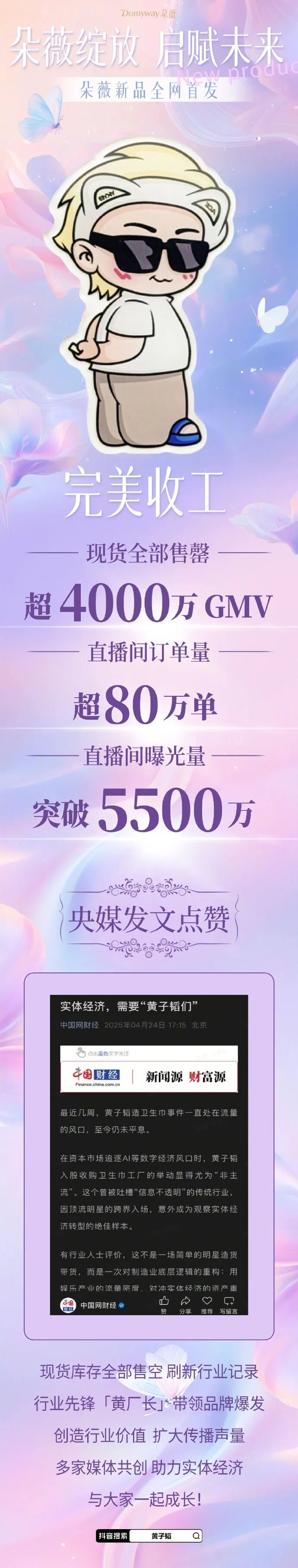 5月18日晚,黄子韬卫生巾品牌上线发售,售价49.8元起。截至目前,仅其抖音官方旗舰店销量已超120万单。目前,没有现货,支持预约。