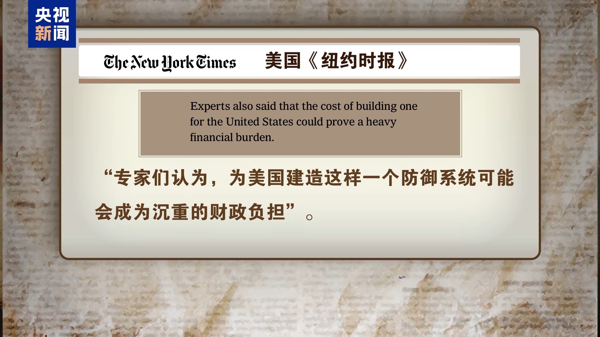 《纽约时报》直言,“专家们认为,为美国建造这样一个防御系统可能会成为沉重的财政负担”。