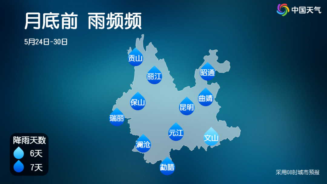 江南和华南的雨只是“小打小闹”,未来三天,云南才是全国降雨最强的区域,甚至一直到本月底前,云南都会是“雨频频”的状态,多地降雨日数或达6至7天。