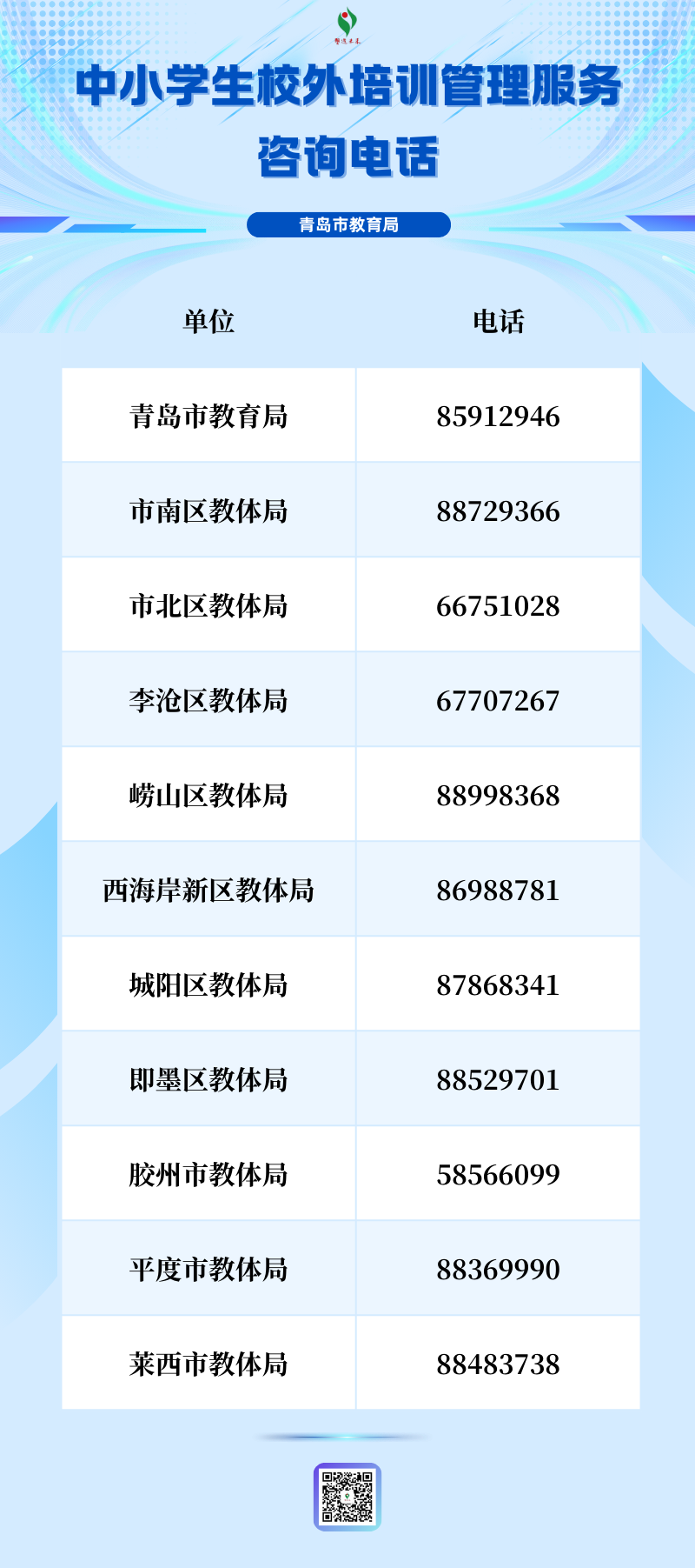 中小学招生考试高峰即将来临,为进一步方便市民咨询问题,倾听市民诉求,提供优质服务,青岛市教育局汇总全市招生、考试、中小学生校外培训管理服务咨询电话,分别受理市民关于招生入学、学籍管理和规范办学,教育考试,中小学生校外培训管理相关问题,欢迎广大市民于工作日时间拨打电话咨询。现公布如下: 责任编辑:程雪涵 0