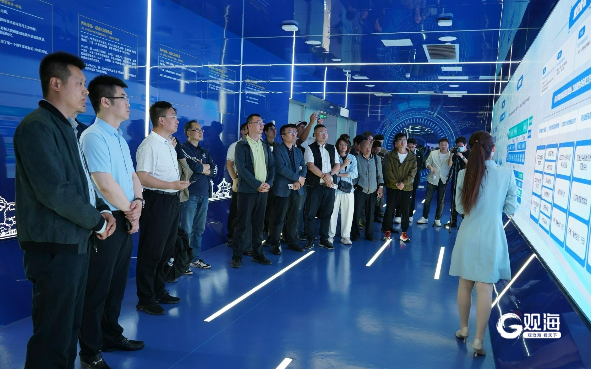 与会人员参观城市云脑中心的政务大模型创新场景展厅
