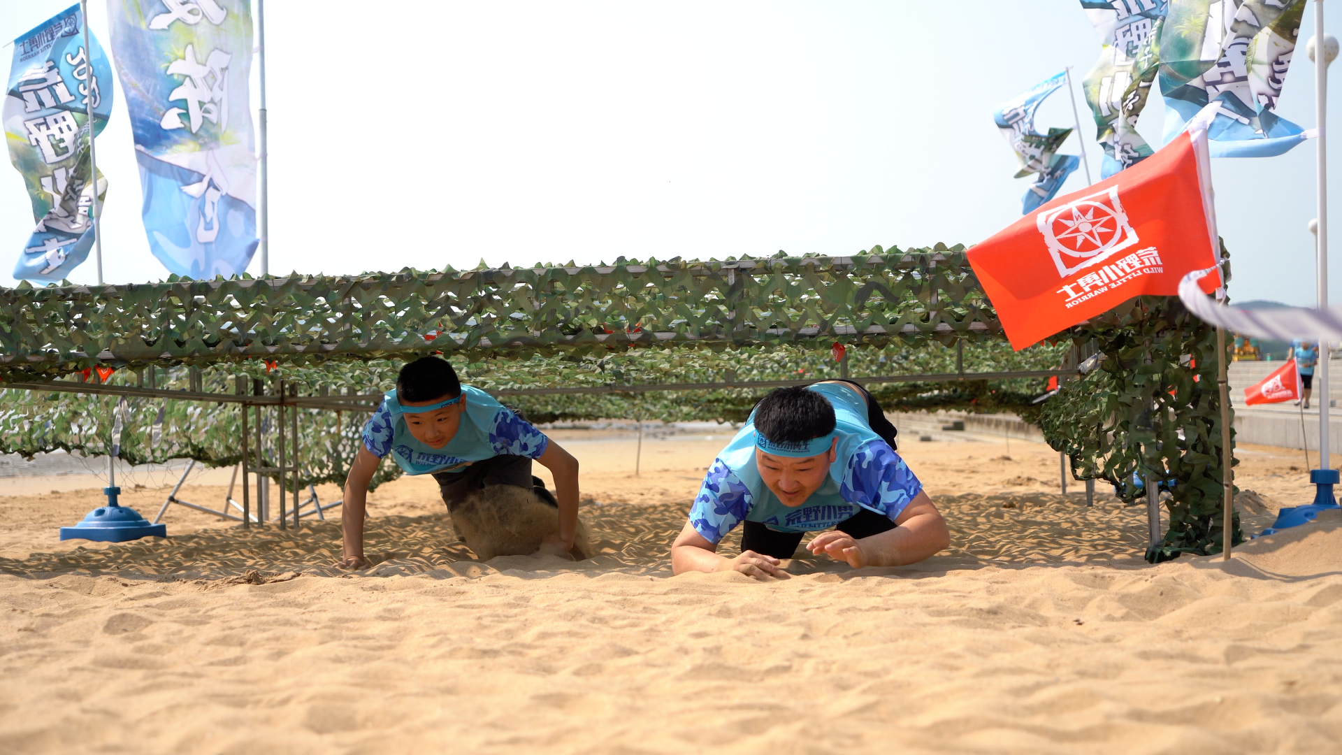 赛事精心设置多个关卡,赛道串联起沙滩、水域等多样地形,成为亲子共同成长的独特舞台。其中,“负重前行”“沙地拖拽”等环节着重考验亲子协作能力与体力;“编制渔网”“人生淬炼”则激发孩子们的智慧与探索精神;“翻山越岭”“牵引横渡”更是对勇气与极限的巨大挑战。关卡环环相扣,旨在全面考验并提升参赛者的体能、意志与协作能力。赛场上,孩子们展现出坚韧不拔的精神,摔倒后自行爬起;家长们耐心鼓励,给予孩子力量。面对高难度障碍,亲子携手并肩,共同攻克难关。加油声、欢呼声此起彼伏,将赛场氛围推向高潮。这场赛事不仅是对小朋友们体能的考验,精神和意志的深度磨砺,也是一场亲子家庭共赴挑战、深化信任的温馨旅程。