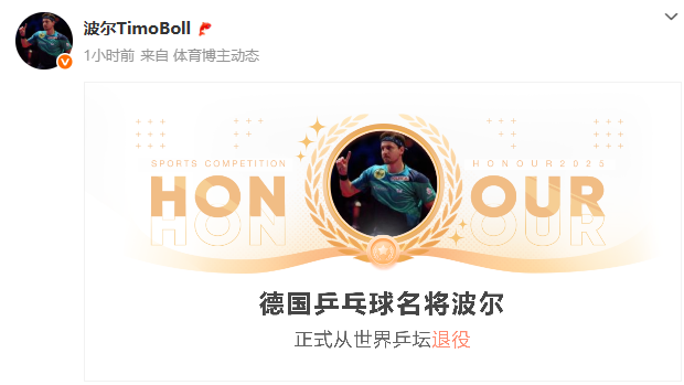 6月16日,德国著名乒乓球运动员蒂姆·波尔正式宣布退役,结束其长达二十余年的职业生涯。