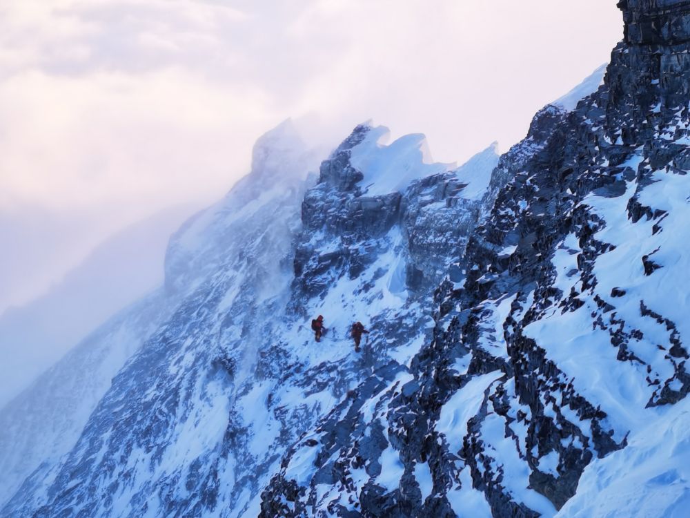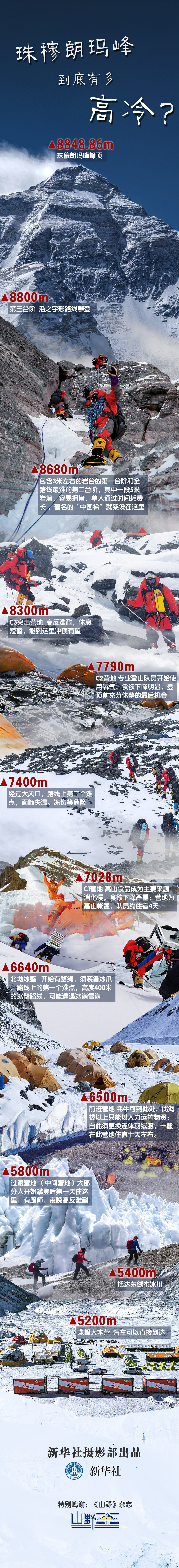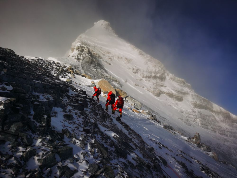 ↑5月27日,2020珠峰高程测量登山队向珠峰峰顶挺进。新华社特约记者 扎西次仁 摄