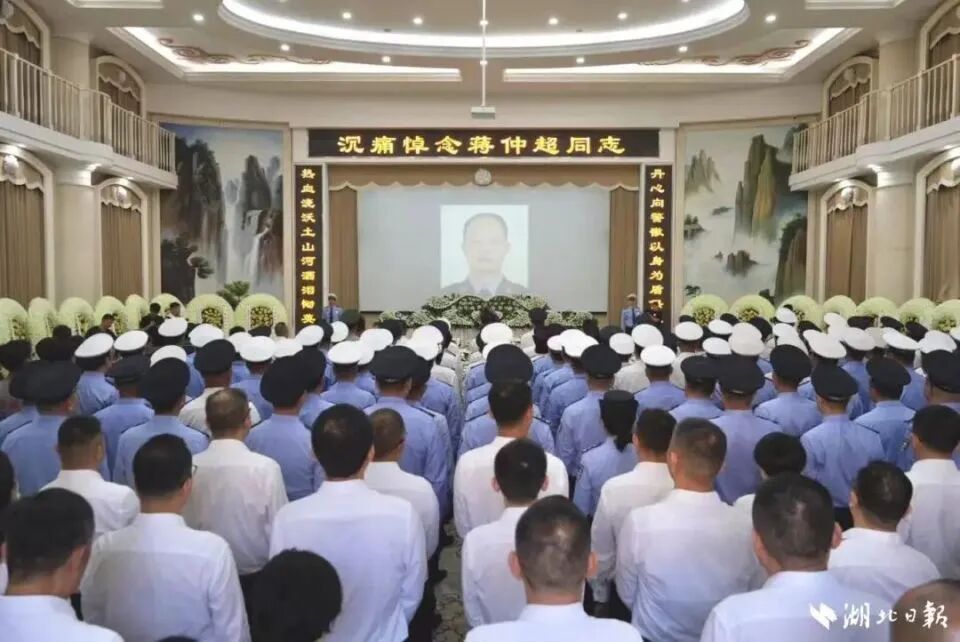6月17日上午,蒋仲超同志遗体告别仪式在武昌殡仪馆庄重举行,他的家属、亲友、生前同事、战友和辖区群众等数百人前来送别。