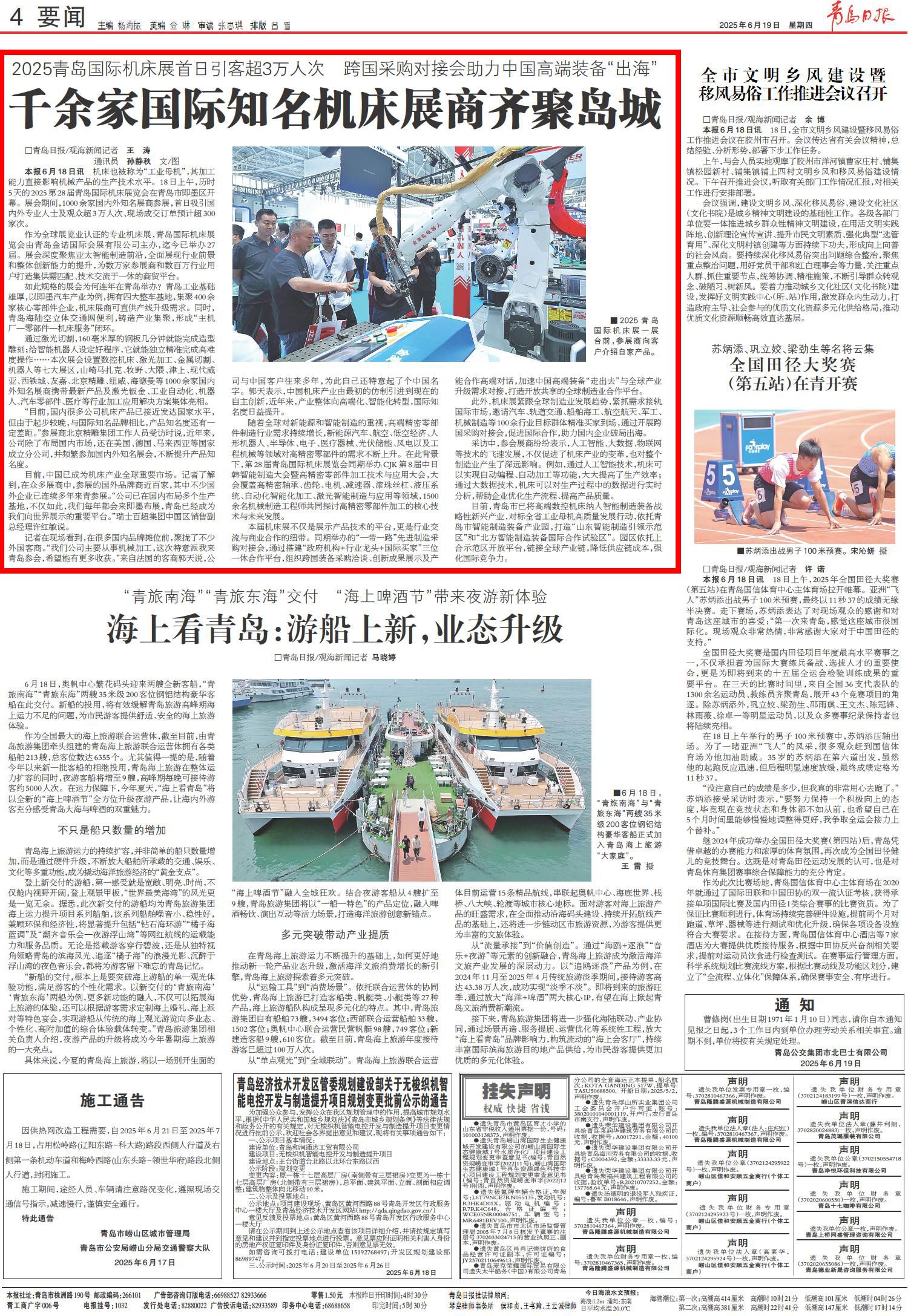青岛日报社/观海新闻讯 机床也被称为“工业母机”,其加工能力直接影响机械产品的生产技术水平。18日上午,历时5天的2025第28届青岛国际机床展览会在青岛市即墨区开幕。展会期间,1000余家国内外知名展商参展,首日吸引国内外专业人士及观众超3万人次、现场成交订单预计超300家次。