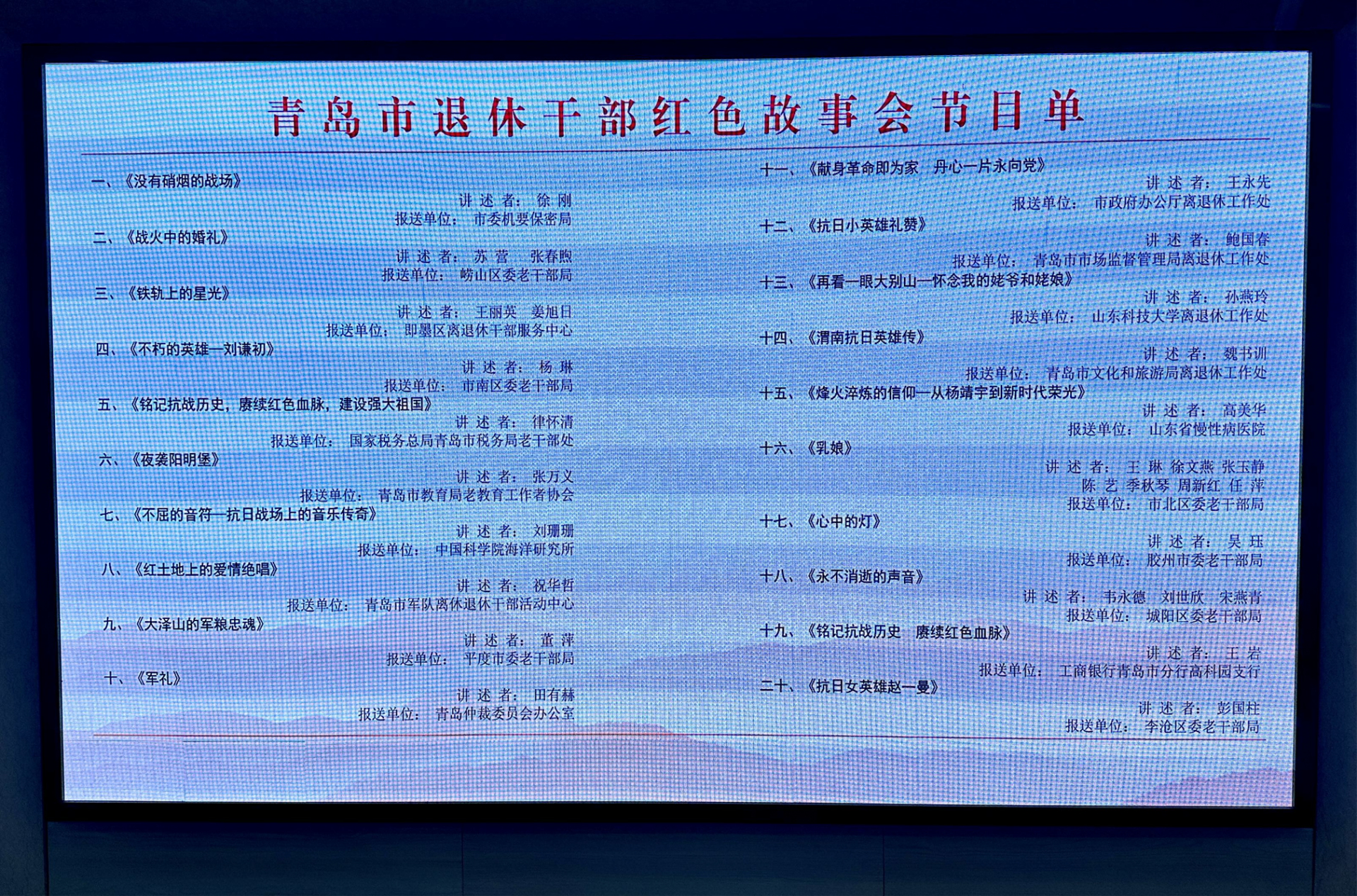 6月20日,由中共青岛市委老干部局主办、青岛市老干部活动中心承办的全市退休干部红色故事会在市老干部活动中心多功能厅举办。市委老干部局副局长王建栋、二级巡视员刘小玲与各区市、市直及驻青单位代表、退休干部、党刊媒体代表齐聚一堂,共同聆听那些承载着历史记忆与红色精神的动人故事。